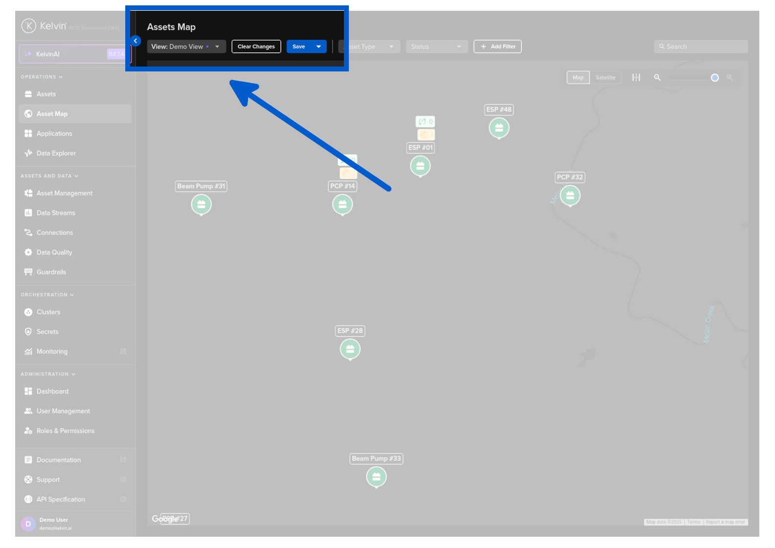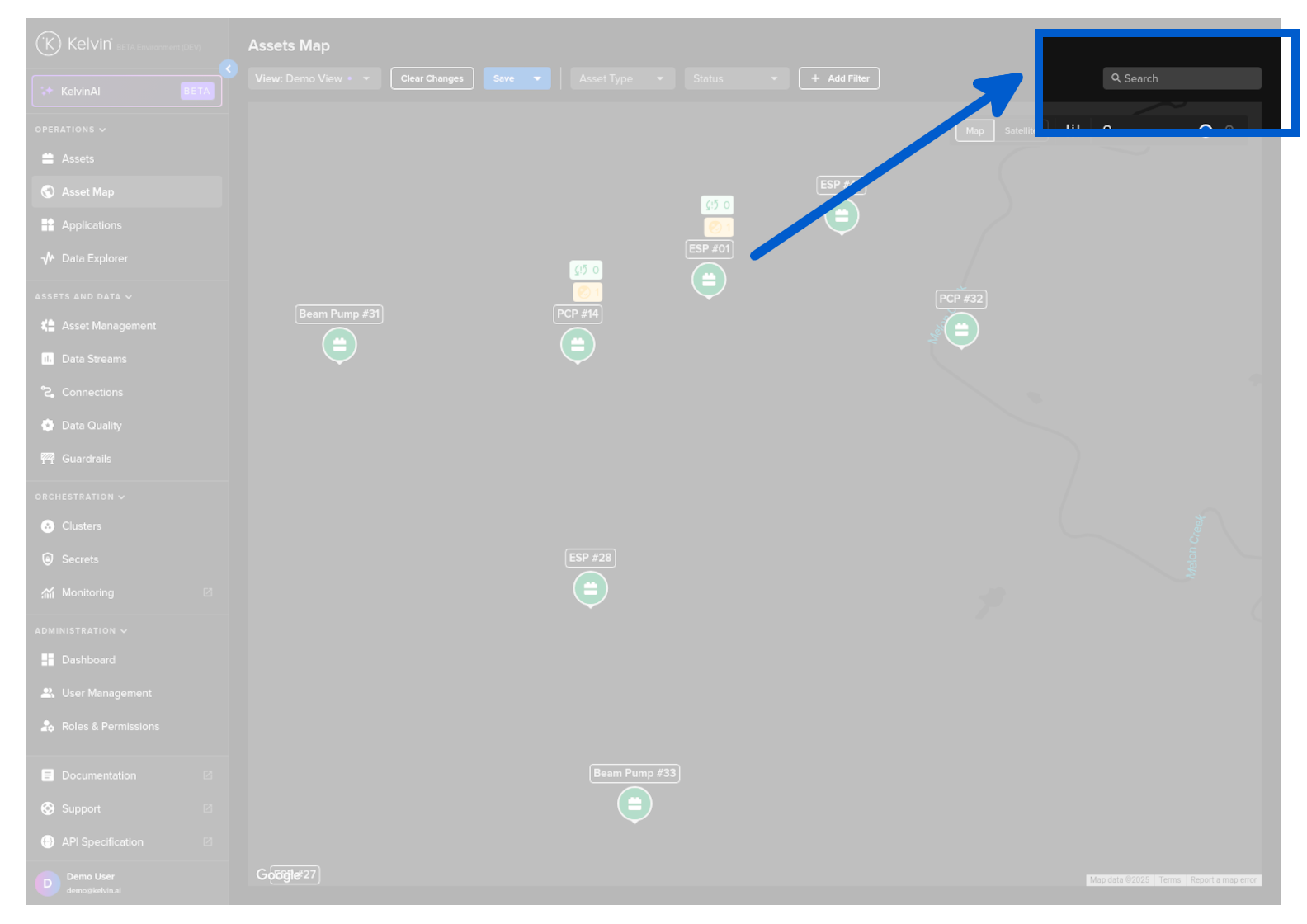 On the page you have a number of common features that help you quickly navigate, find and filter the assets of interest.