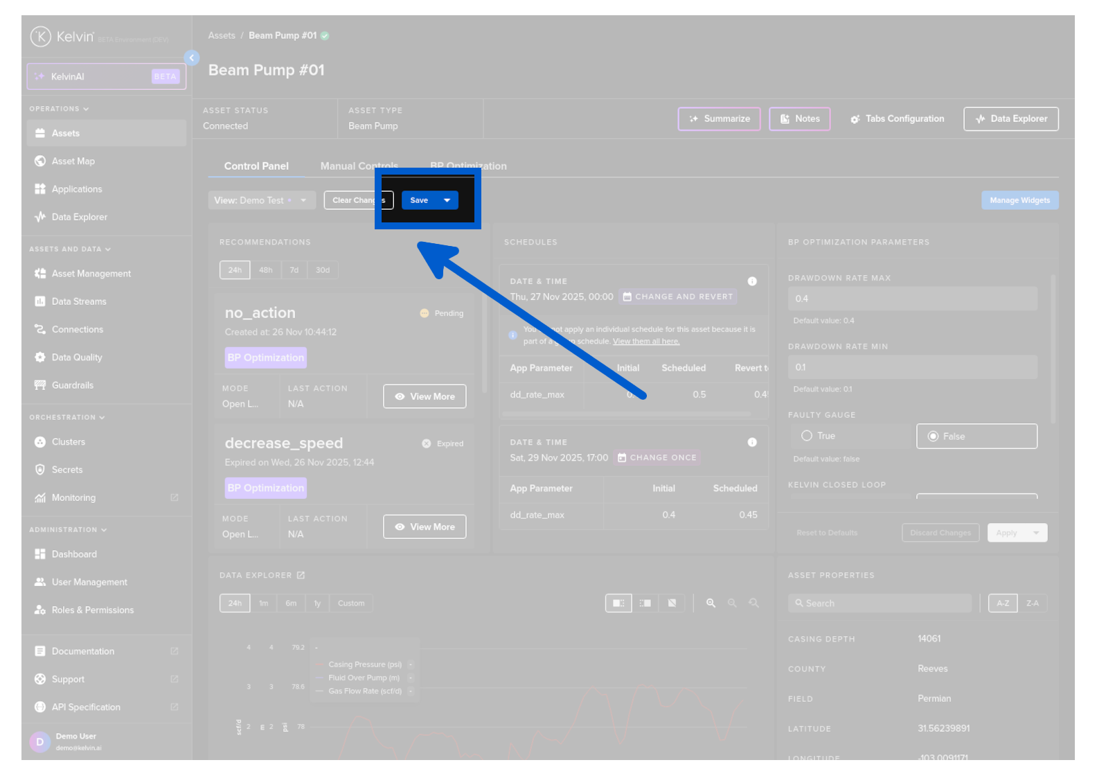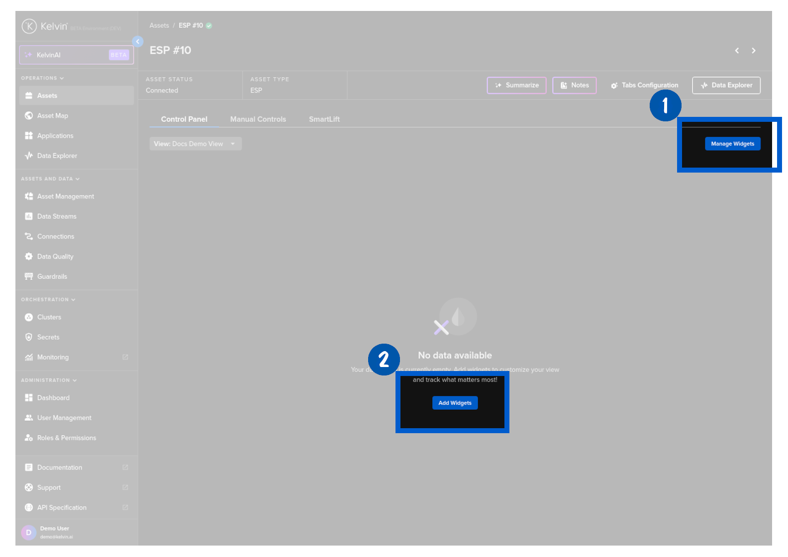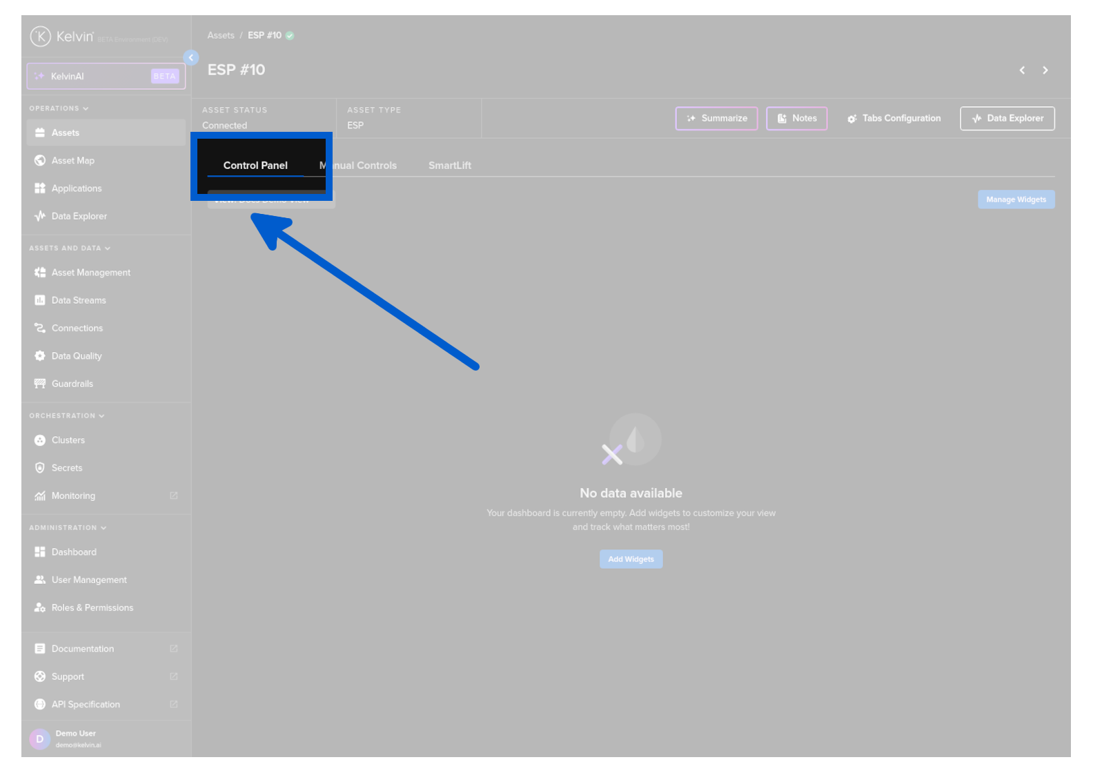 When you view the details of an Asset, one of the tab options is Control Panel.