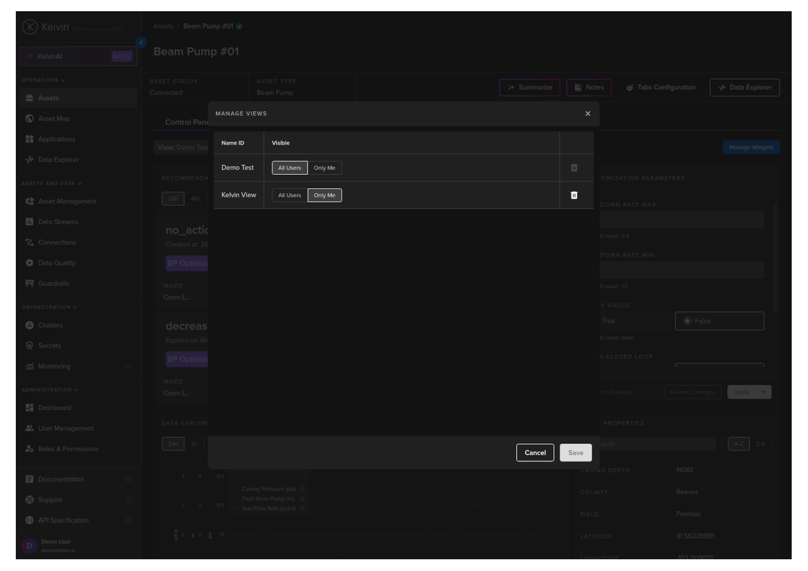 In the scope you can select the views that will be available to all users on the Kelvin Platform.