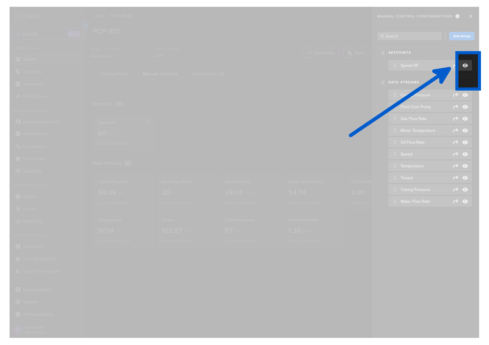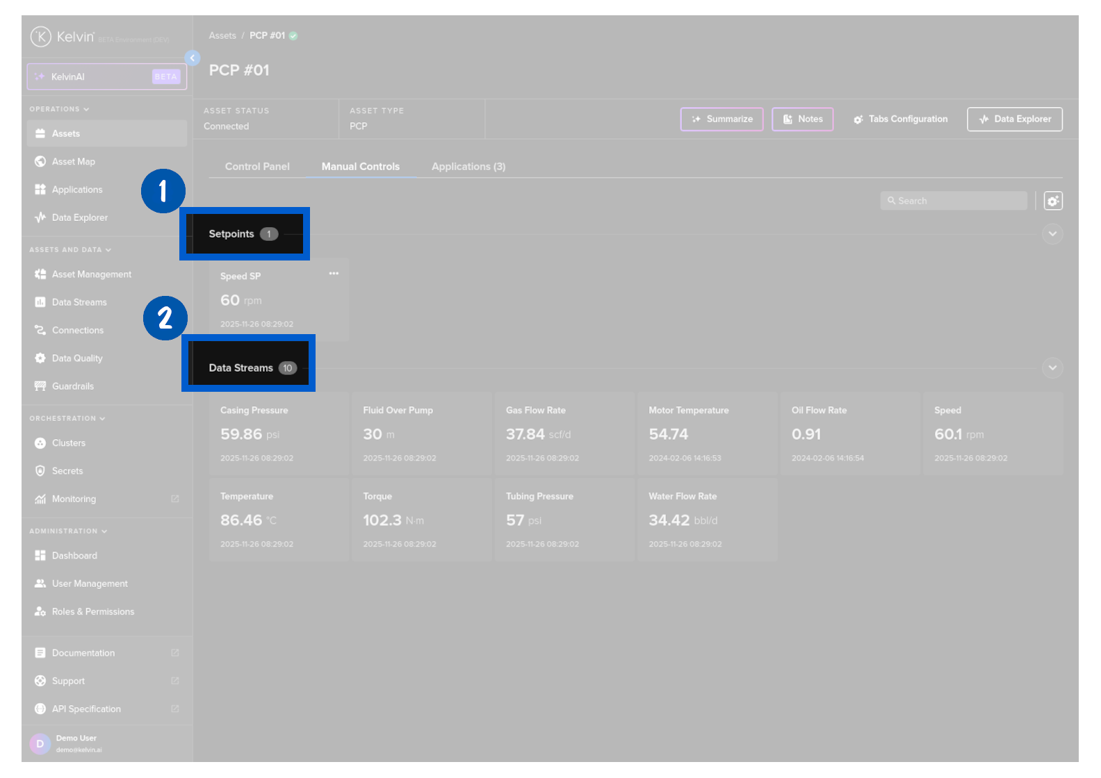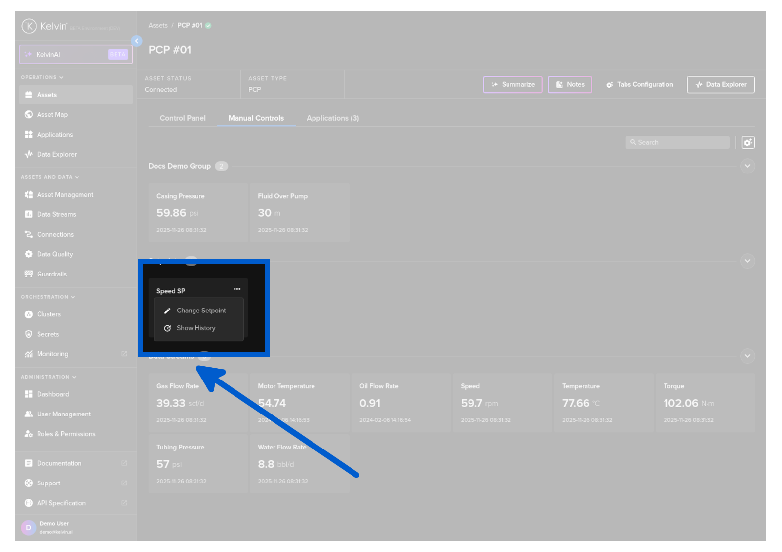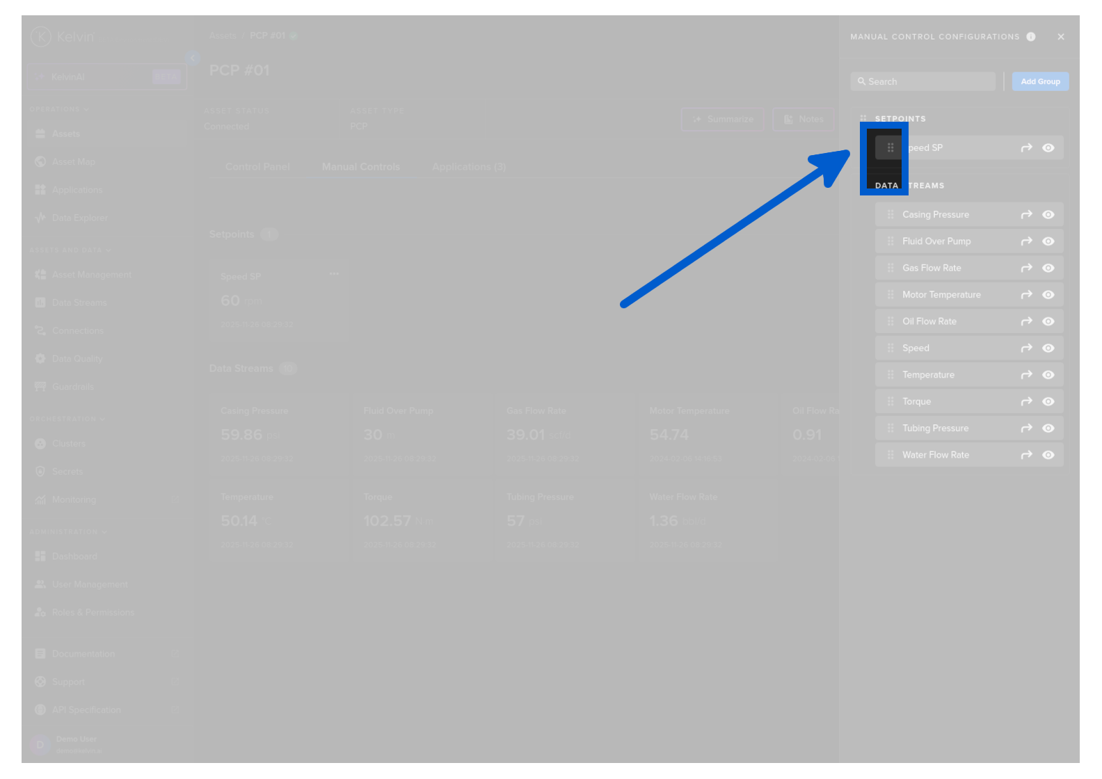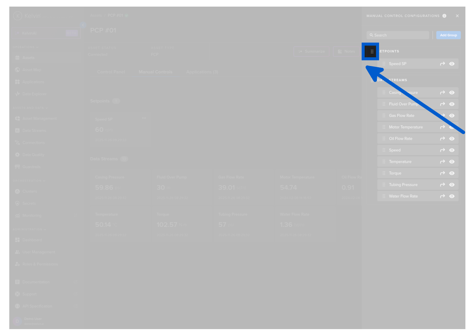 On this page you will learn about monitoring live values and changing values of Data Streams related to the selected Asset in Manual Controls in Kelvin UI.