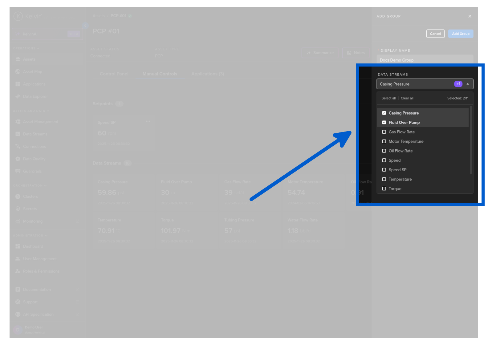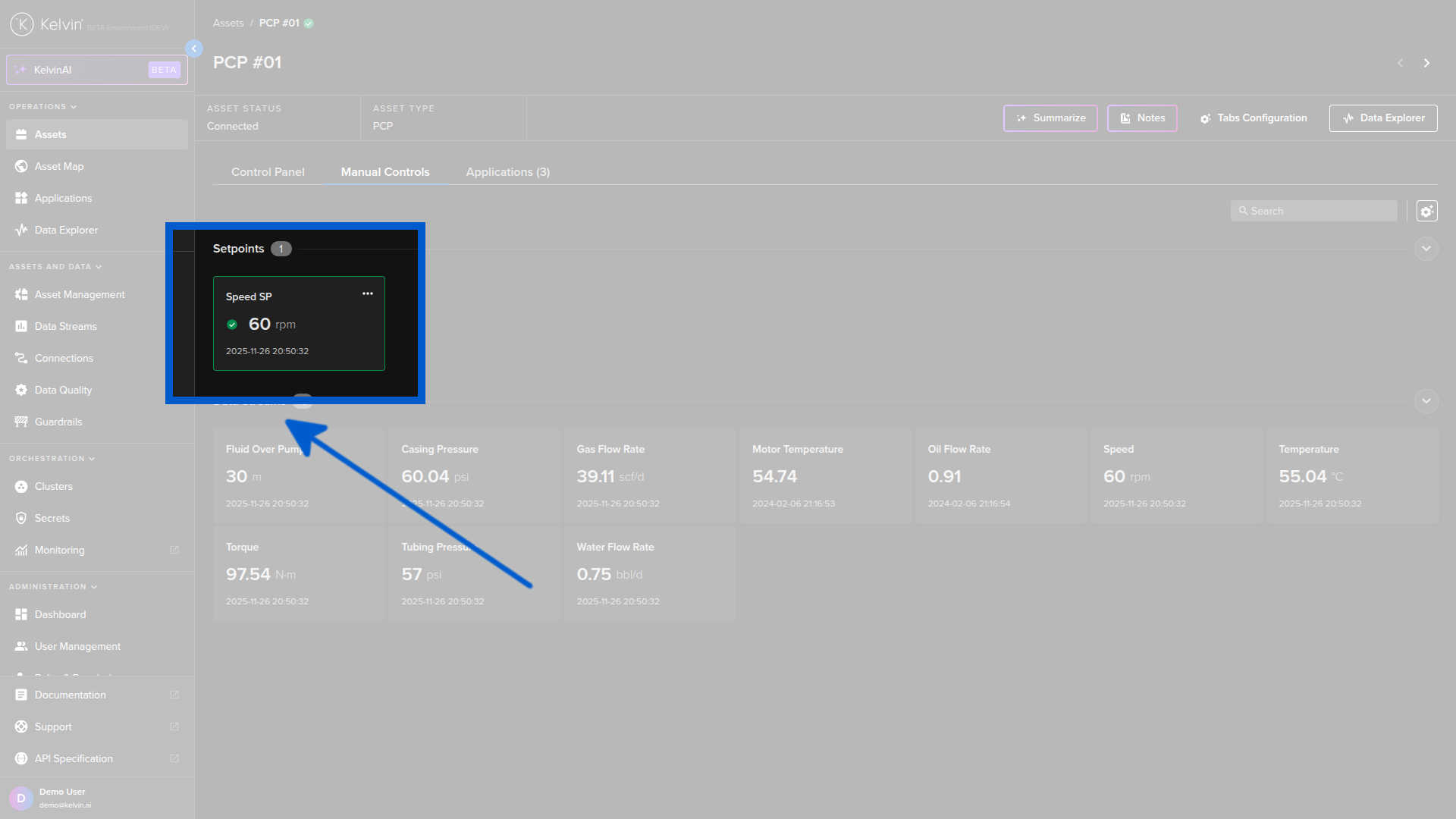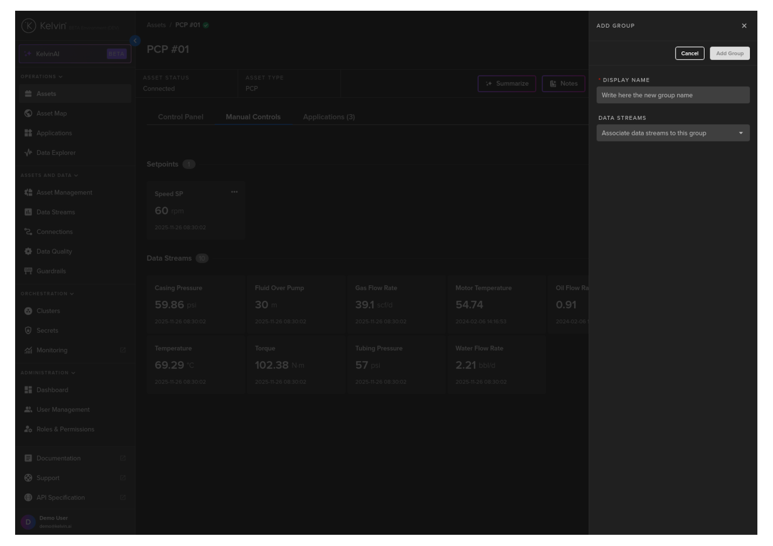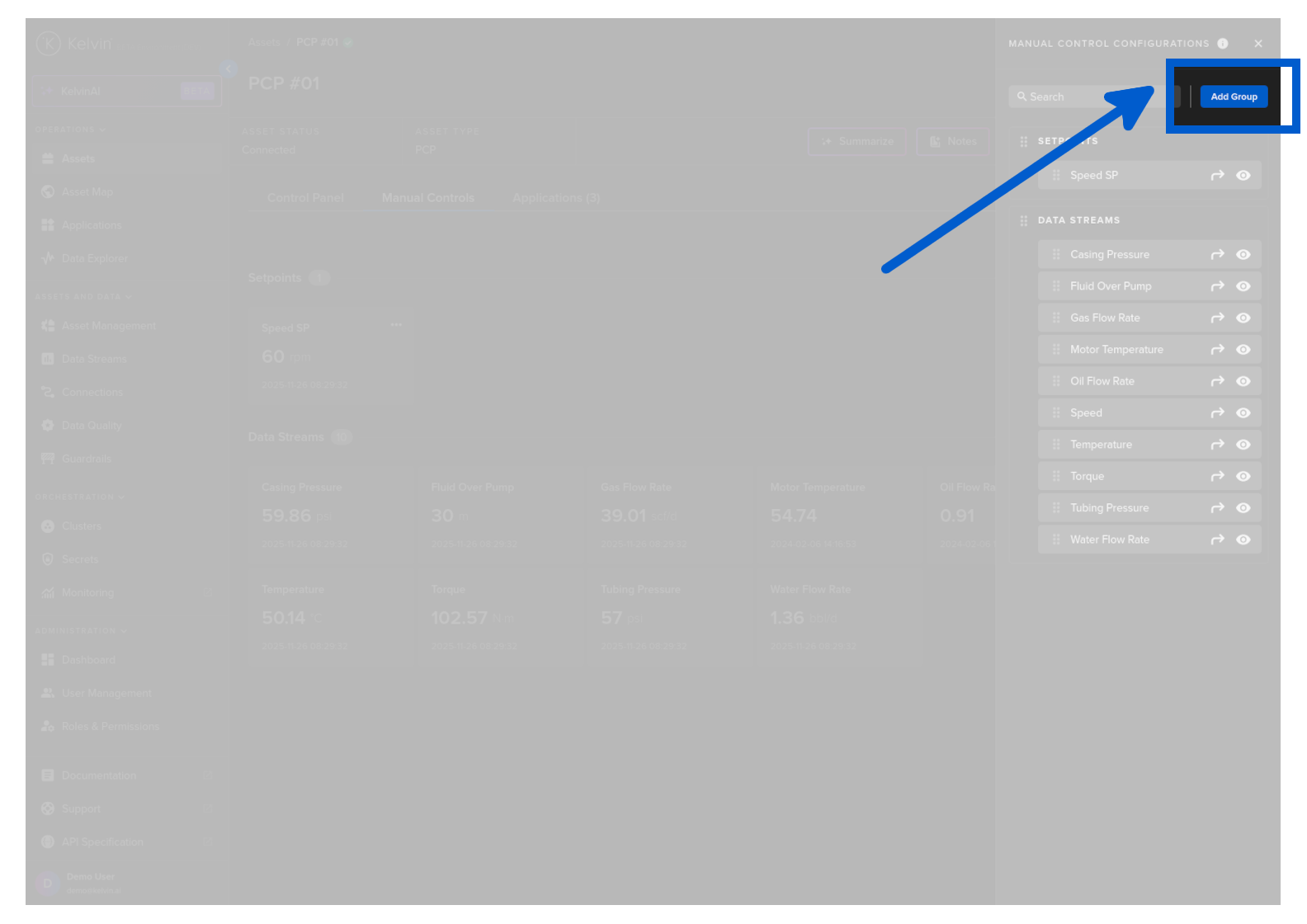 On this page you will learn about monitoring live values and changing values of Data Streams related to the selected Asset in Manual Controls in Kelvin UI.