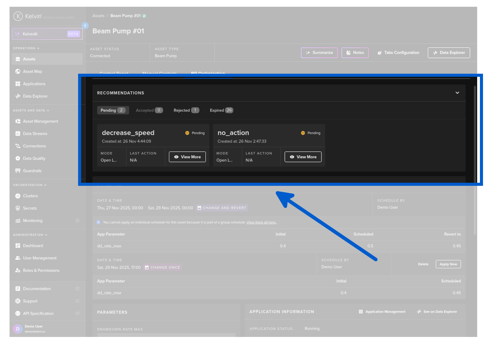 When you select an Asset, in the Asset Details page under Applications tab you can view and filter all the Recommendations by status (Pending, Accepted, Rejected and Expired) for the selected Application. You can read more about this feature here.