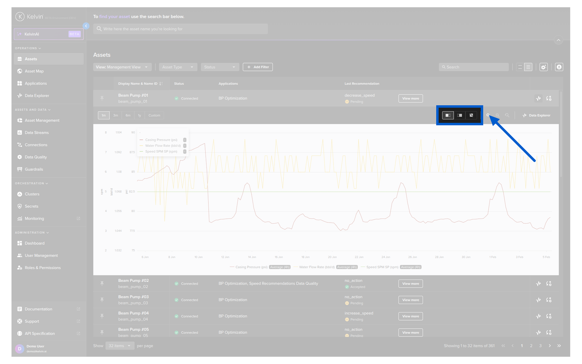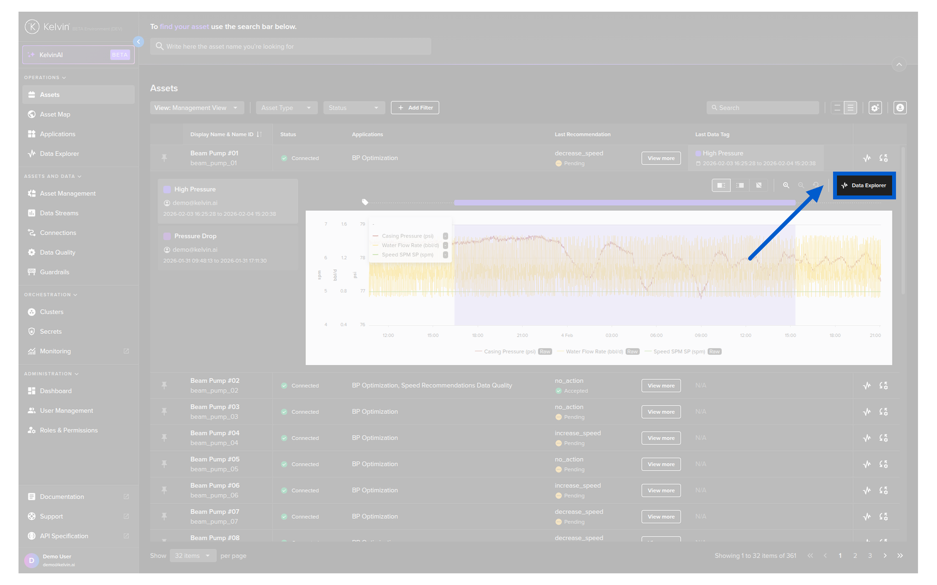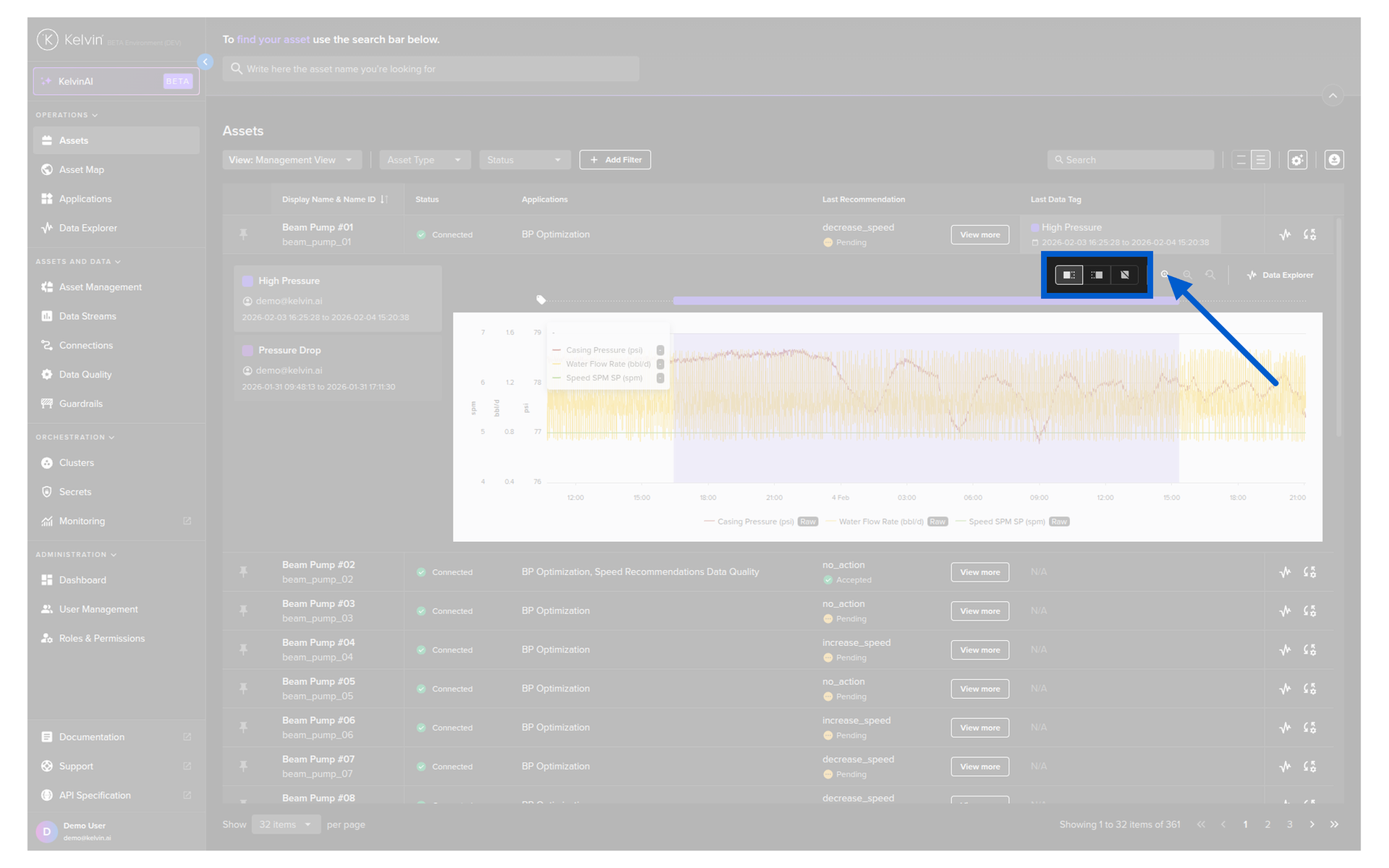 You can quickly see the Data Explorer in the table for an Asset without having to switch back and forth to the Data Explorer page.