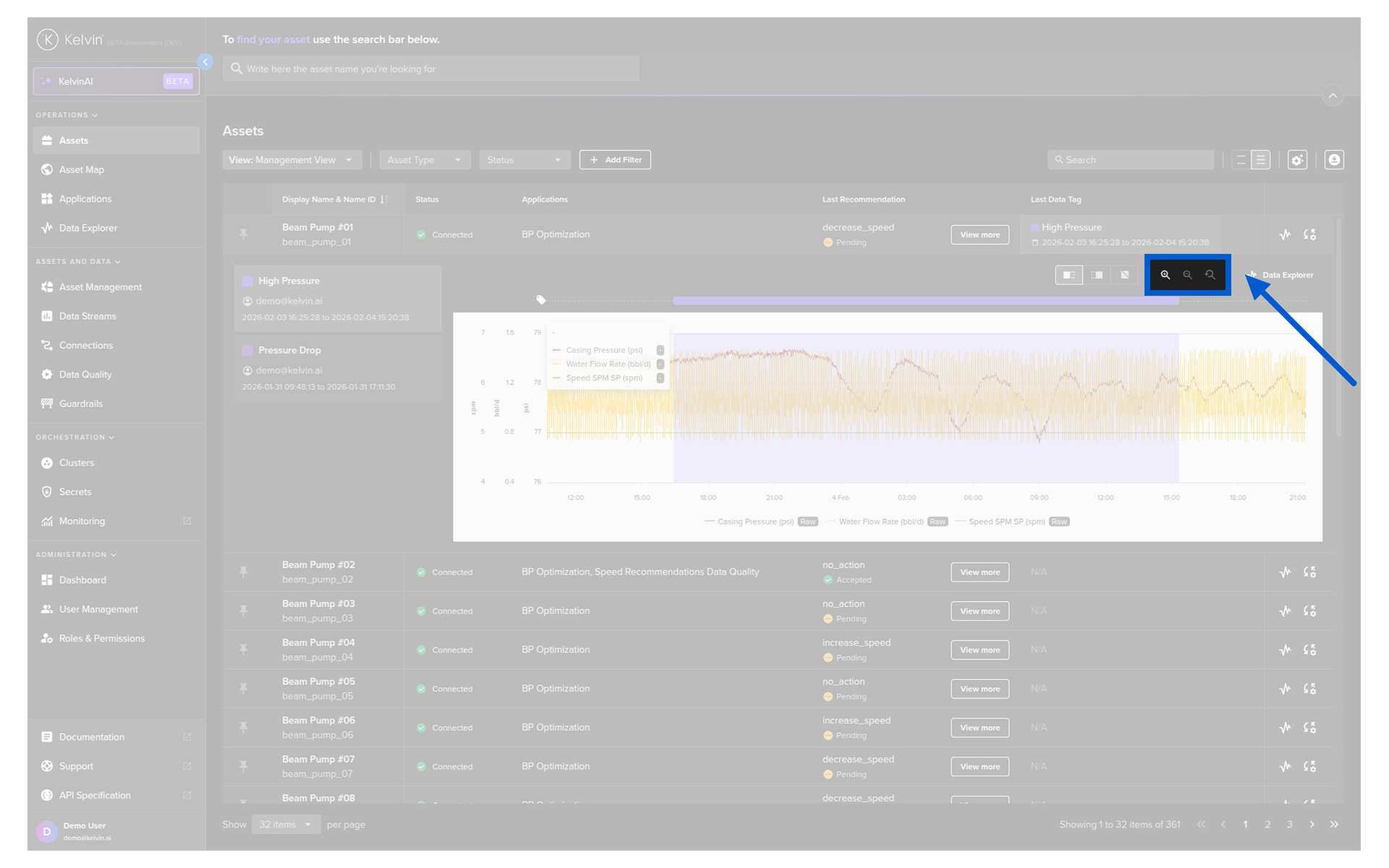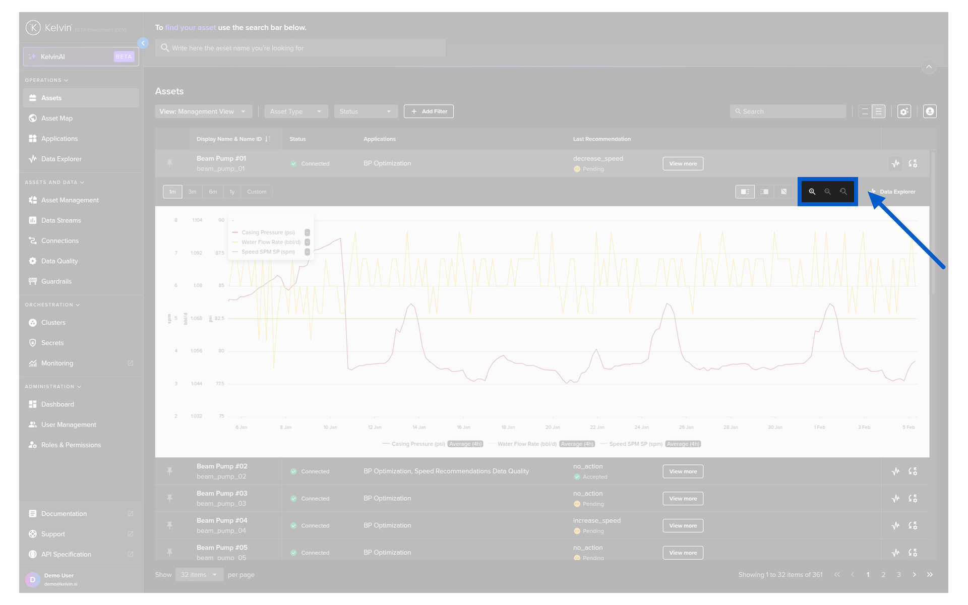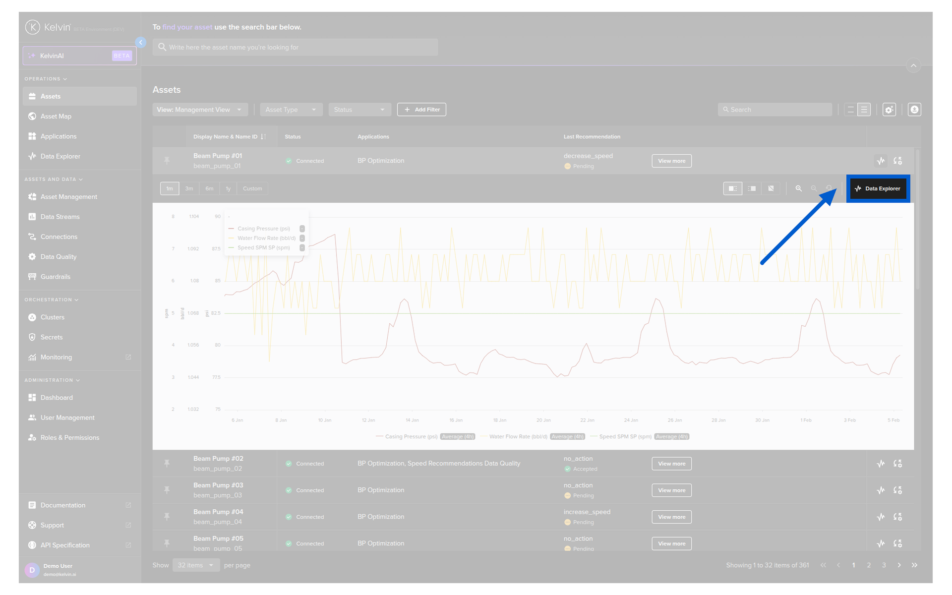 You can quickly see the Data Explorer in the table for an Asset without having to switch back and forth to the Data Explorer page.