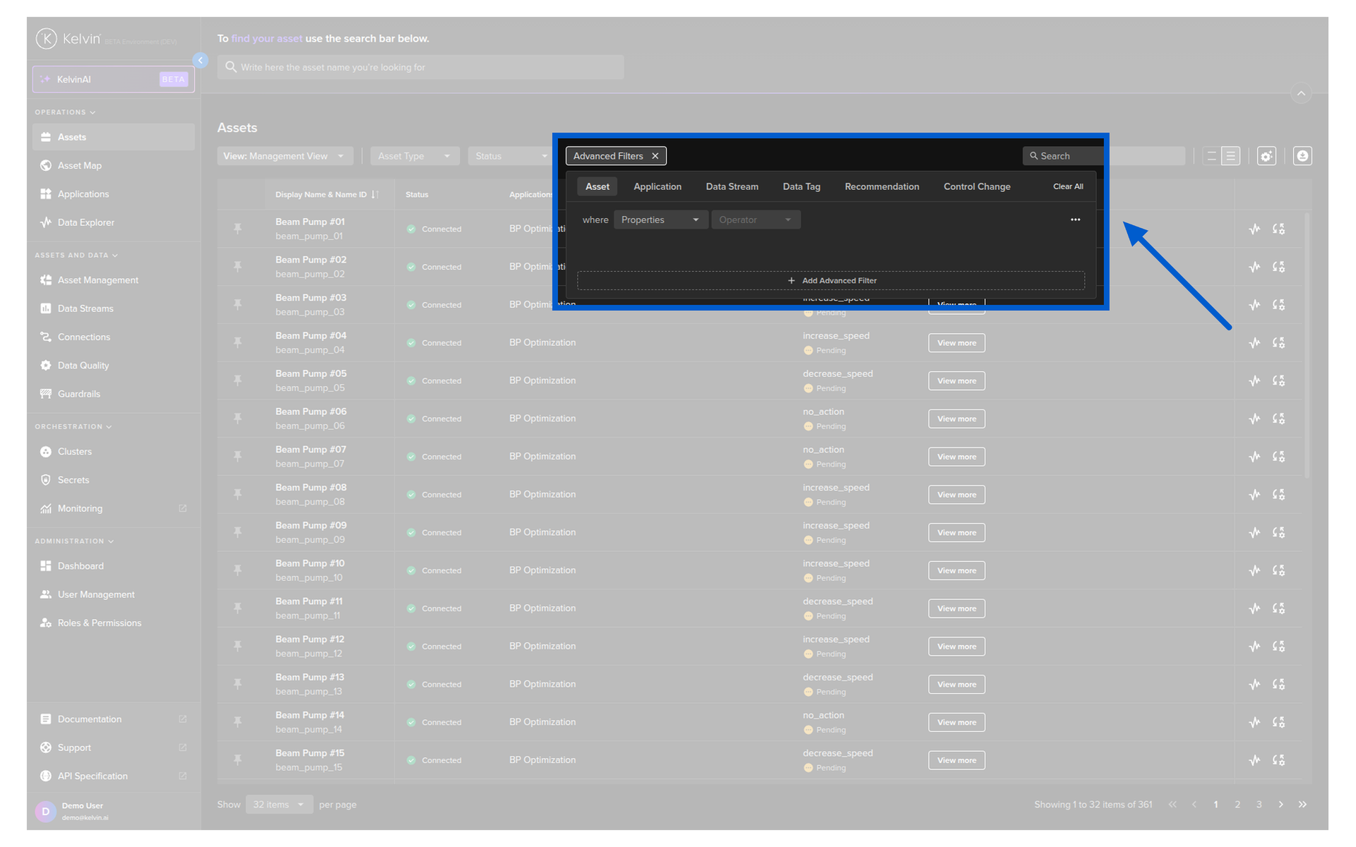 - Apply advanced filters on Asset Properties or Kelvin SmartApps™