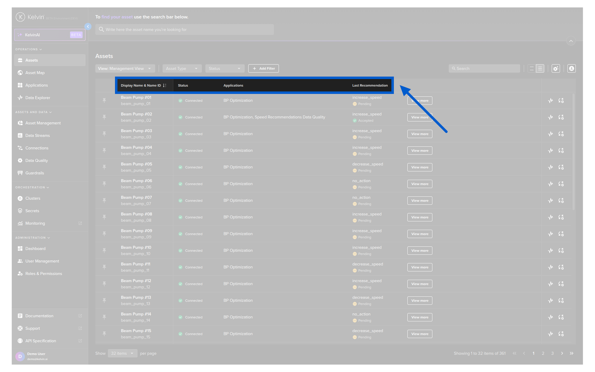 This uses the asset-centric table which is a highly optimized way to customize and view many kelvin-centric information related to the Assets that are relevant to you.