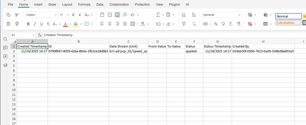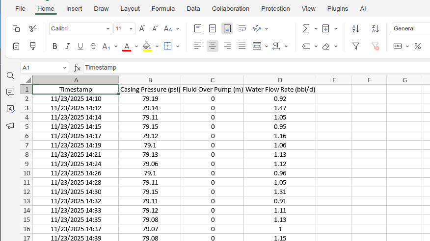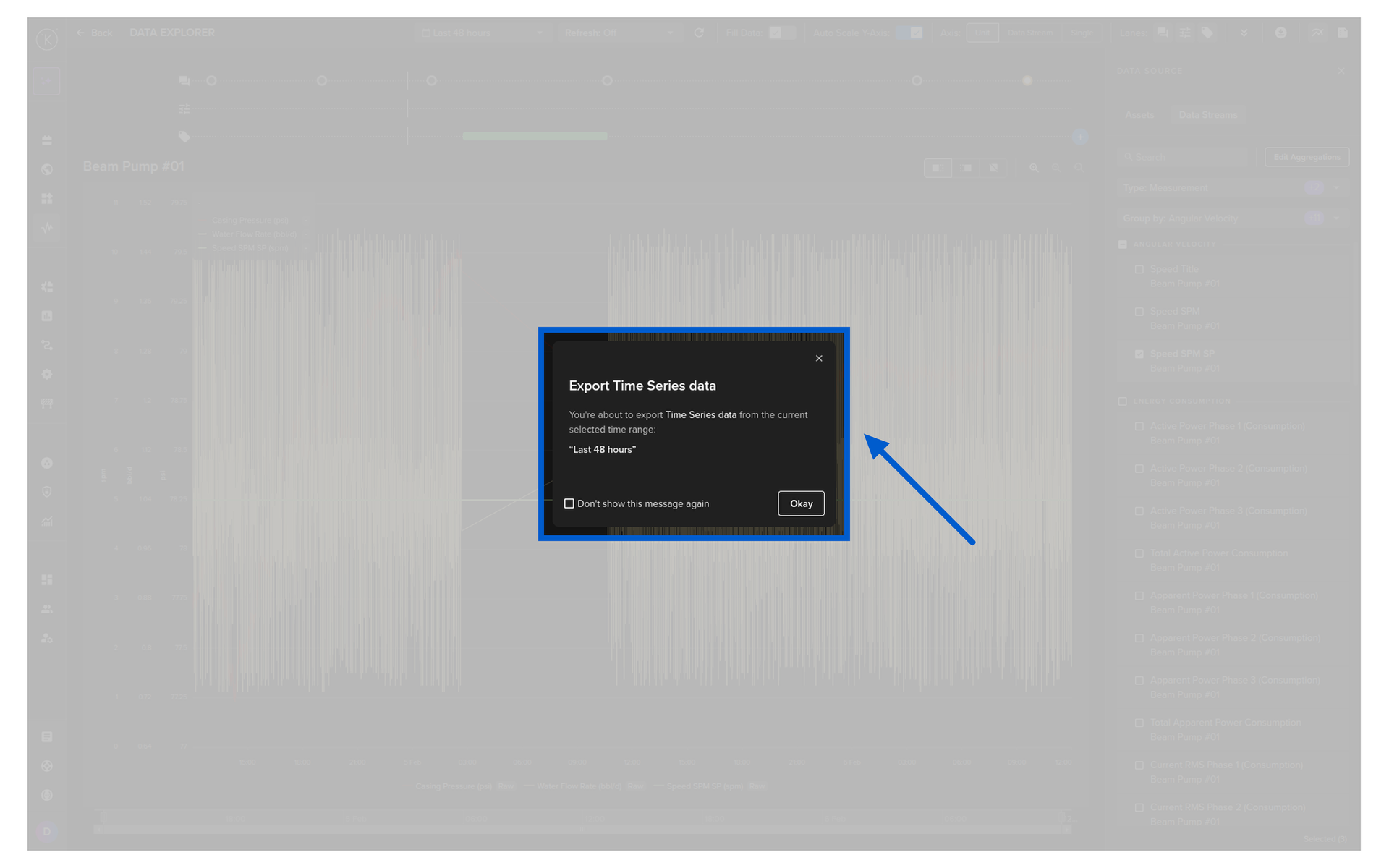 This will export all the Data Stream values for the selected Asset over the viewable time range.