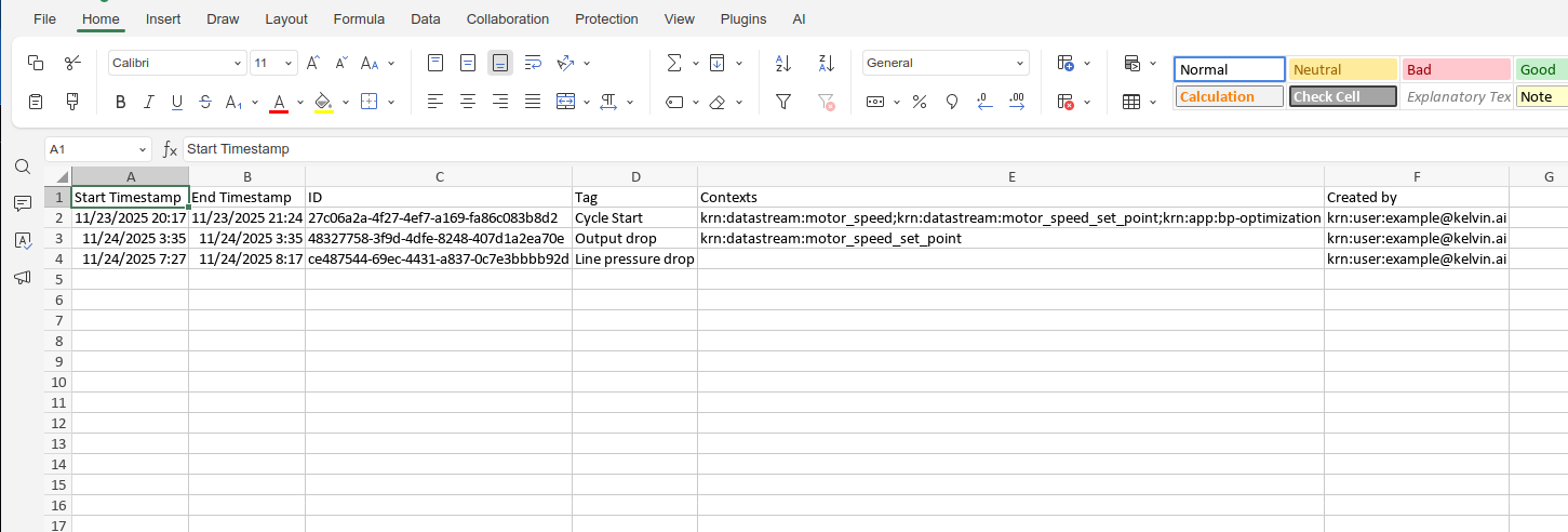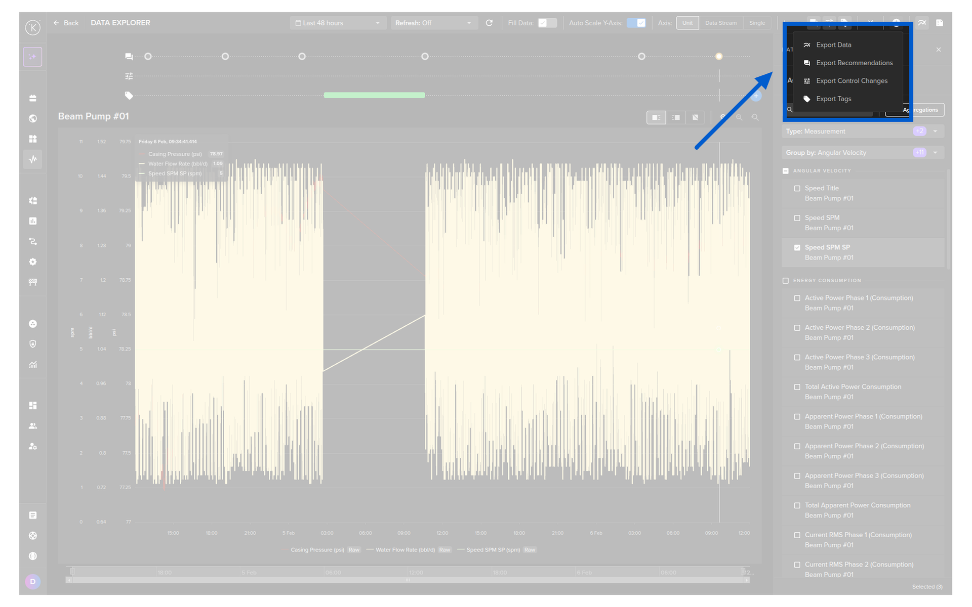 This will export all the Data Tag information for the selected Asset over the viewable time range.