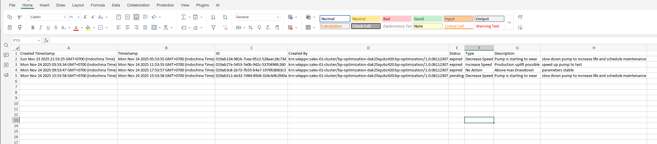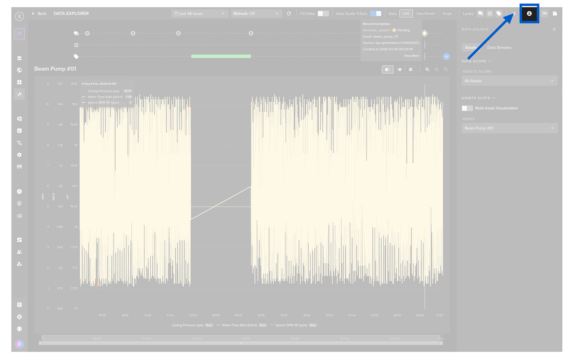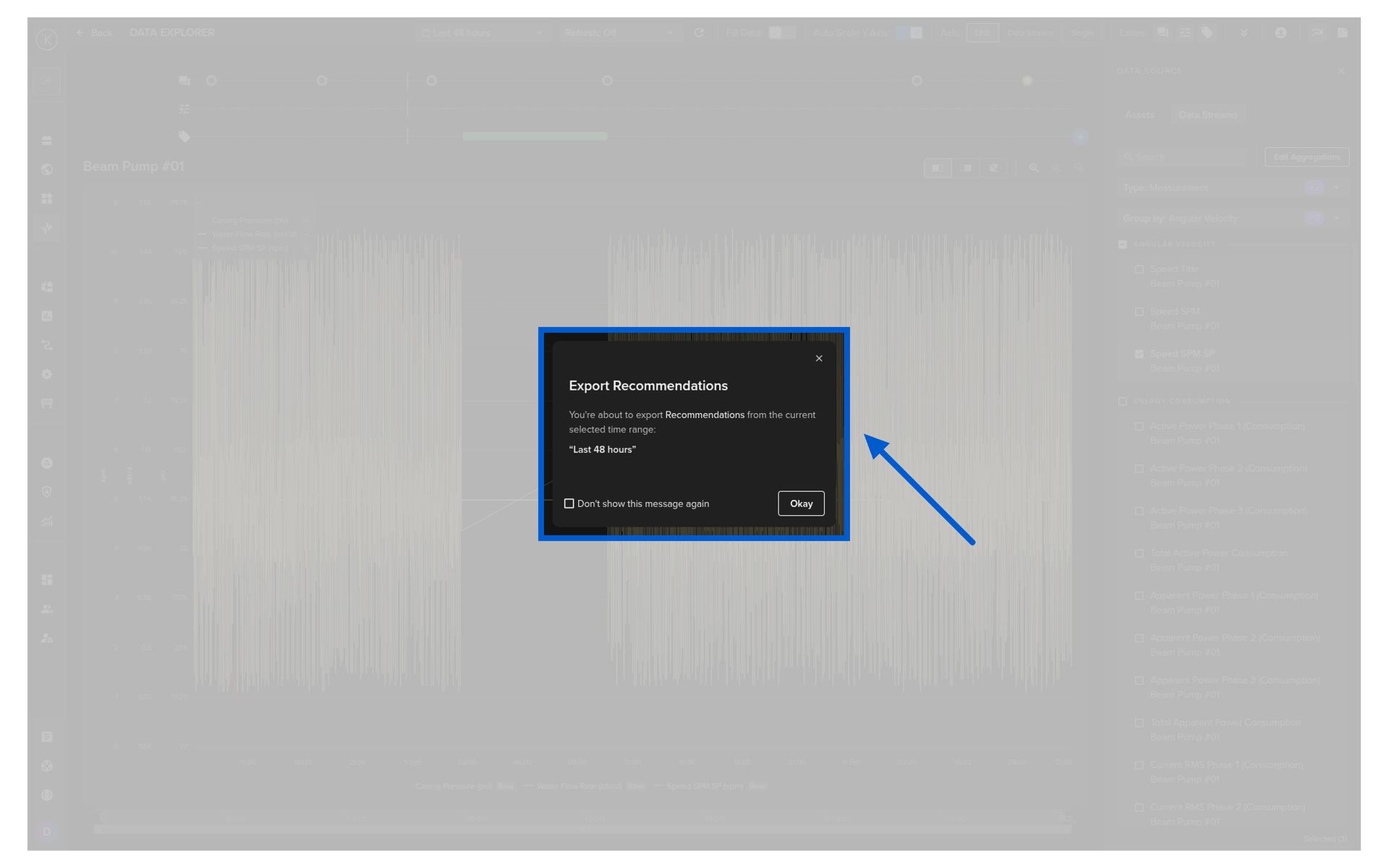 This will export all the Recommendation information for the selected Asset over the viewable time range.