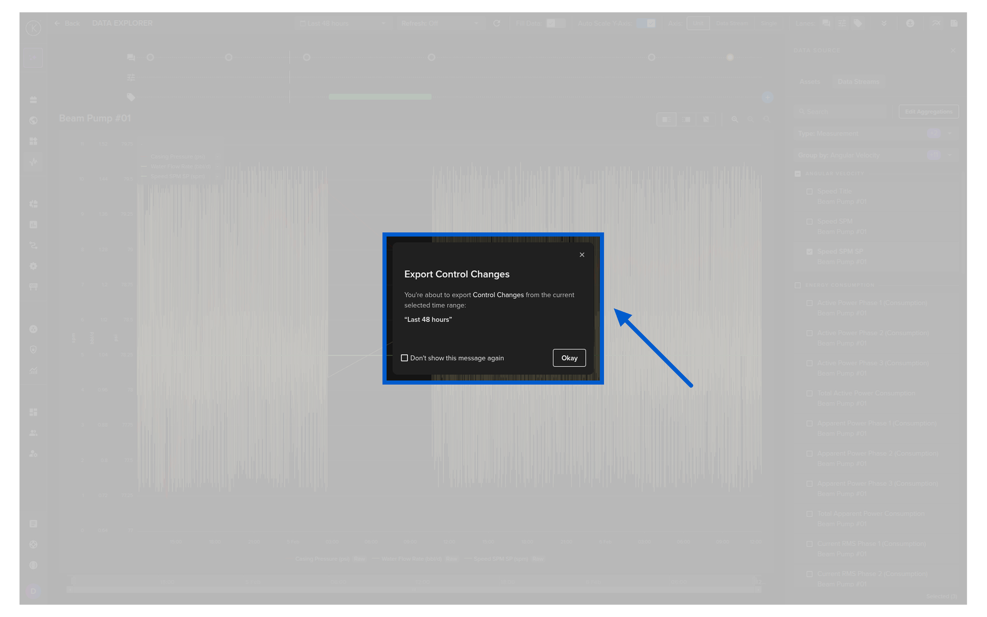 This will export all the Control Change information for the selected Asset over the viewable time range.
