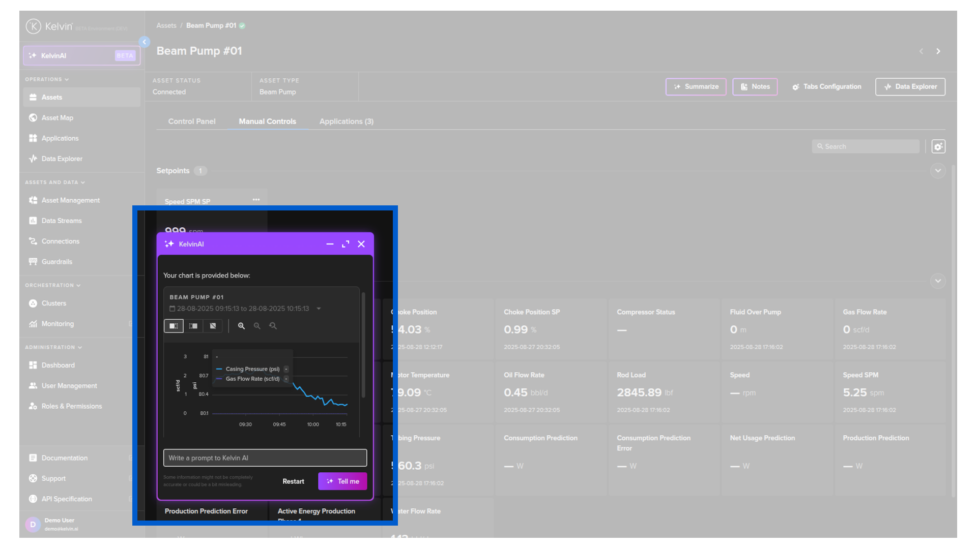 You can display data using the tradition Kelvin Data Explorer Light version embedded into the Kelvin AI chat window.