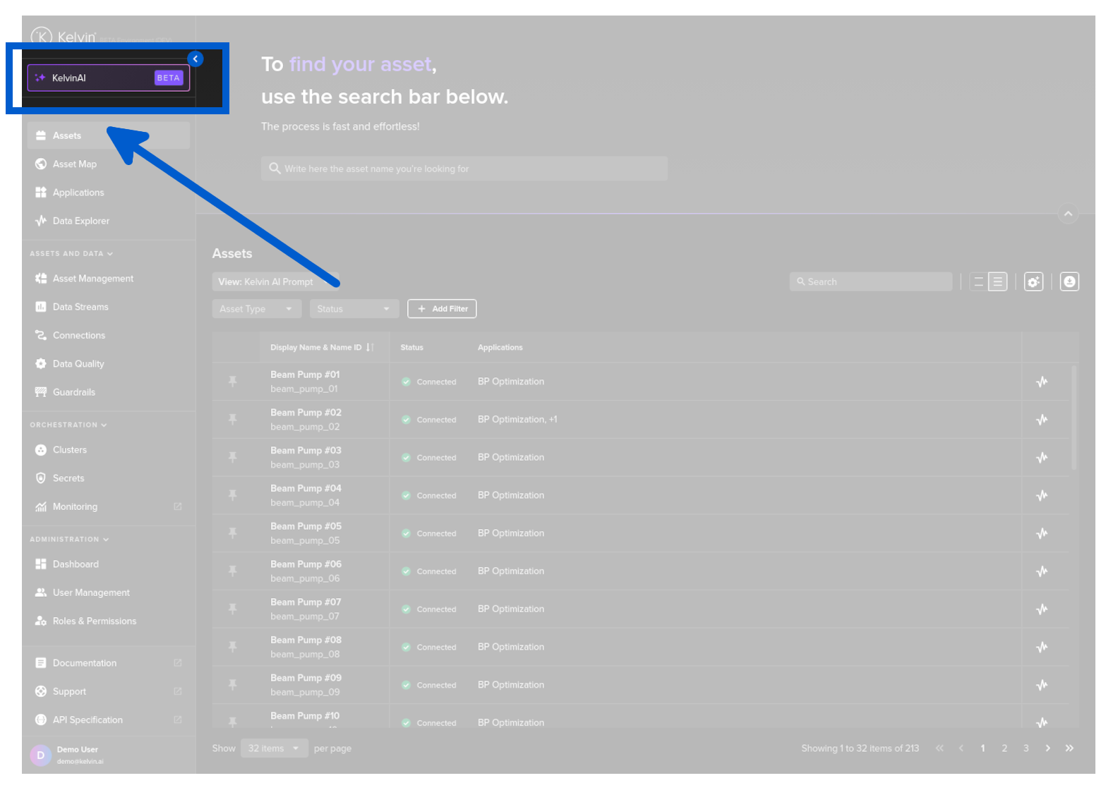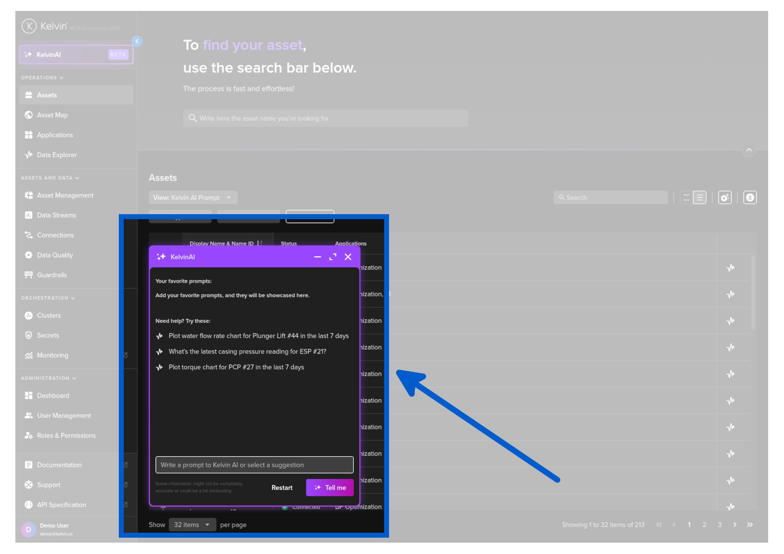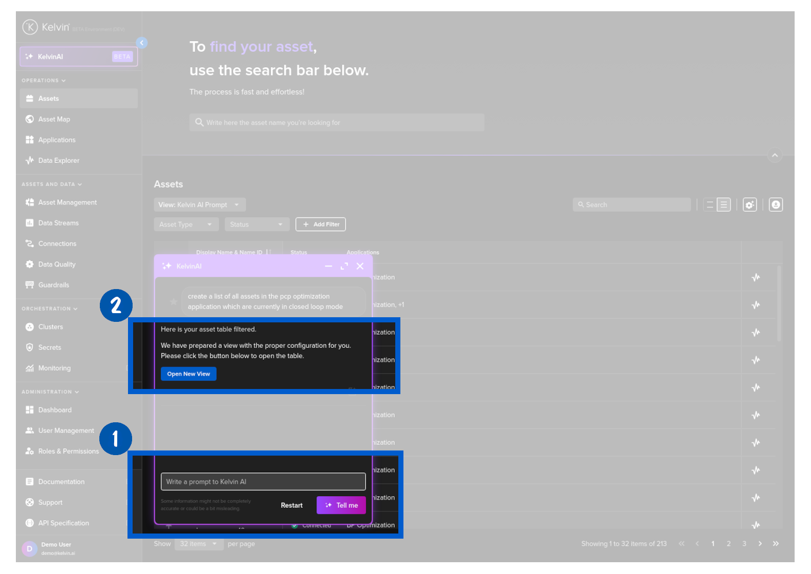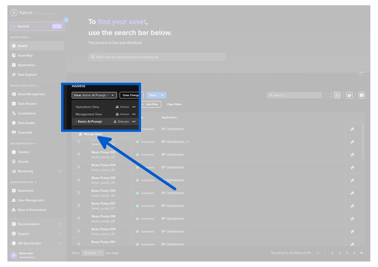 You can use Kelvin AI to quickly setup new filtered Asset Views through the prompt.