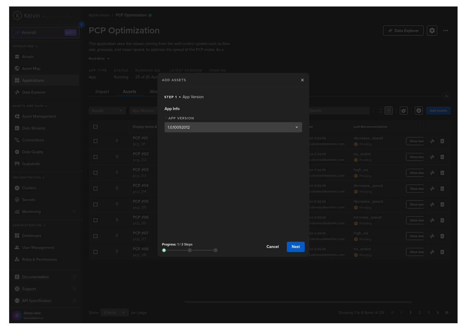 In step 1 select the version of the Application you want the Assets to use.
