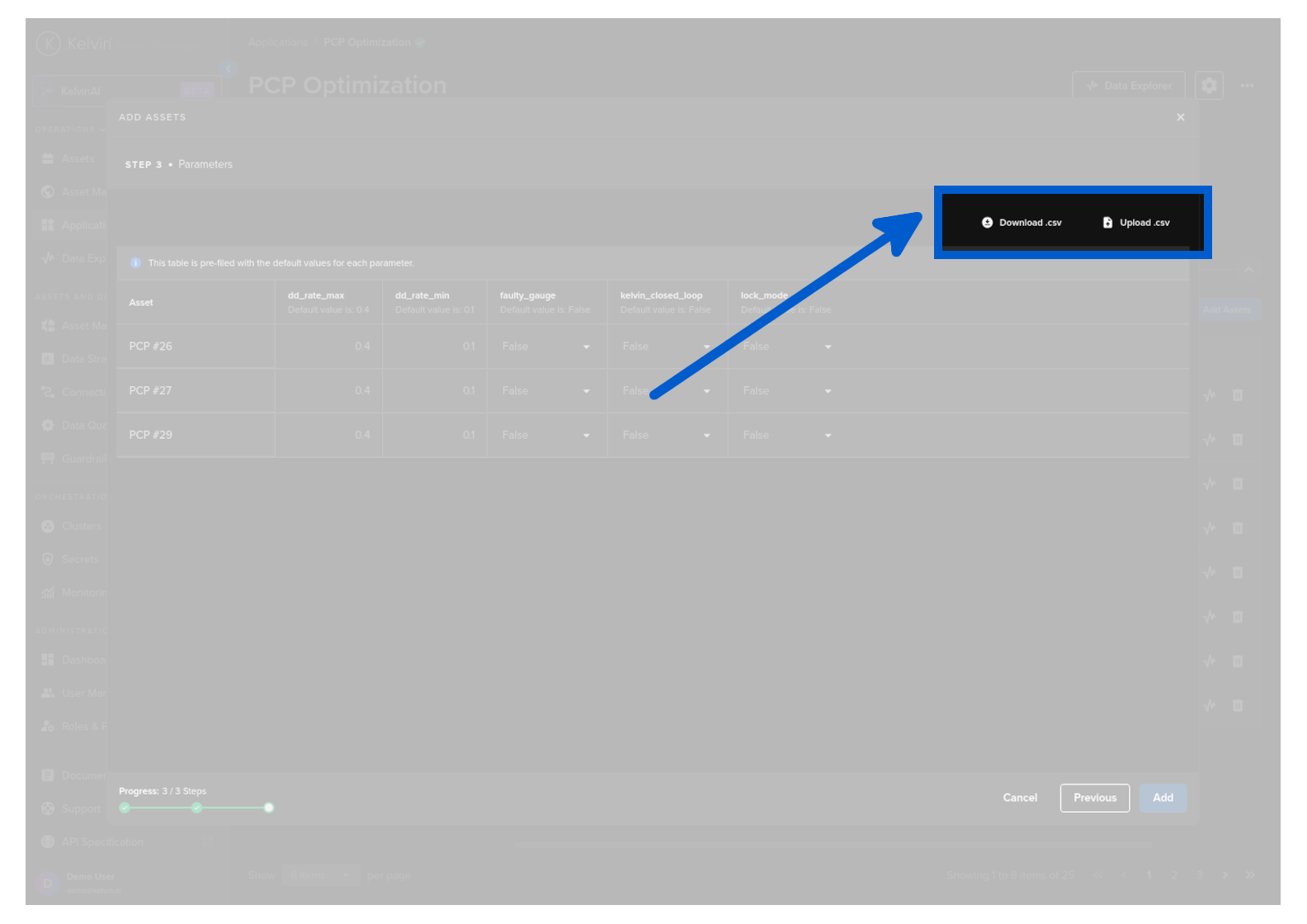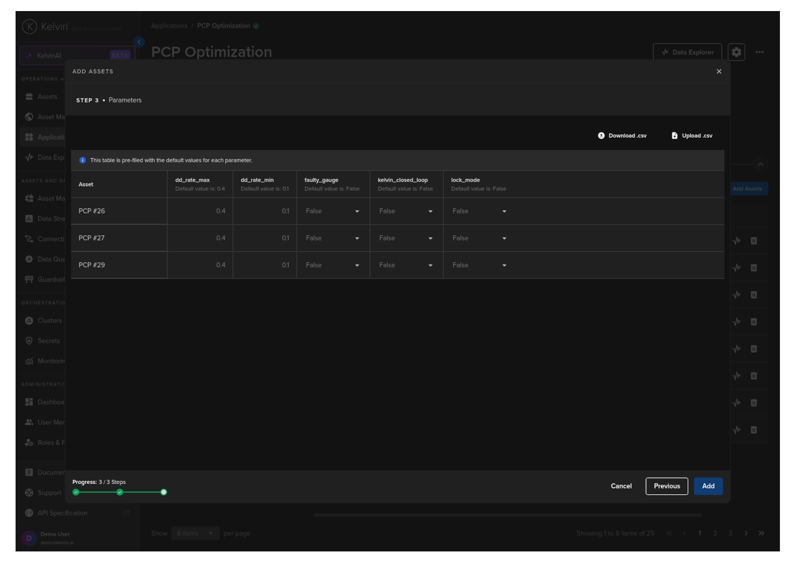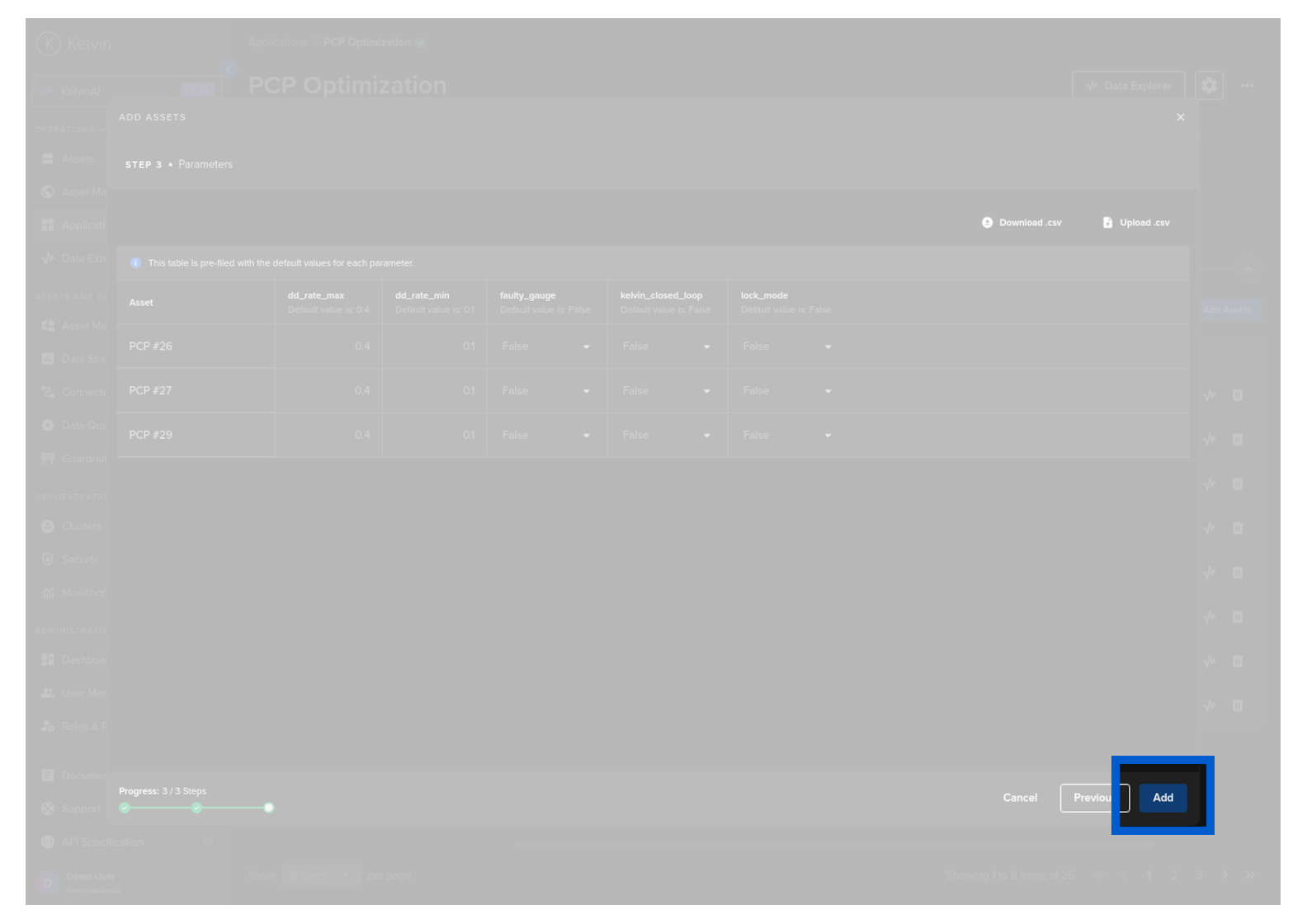 If you are adding many Assets, you can download the App Parameter list to you computer and edit them in Google Sheets or Microsoft Excel.