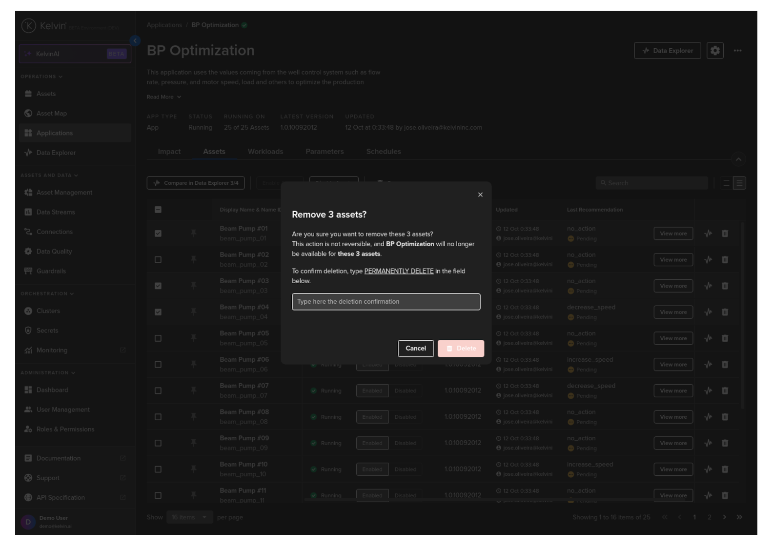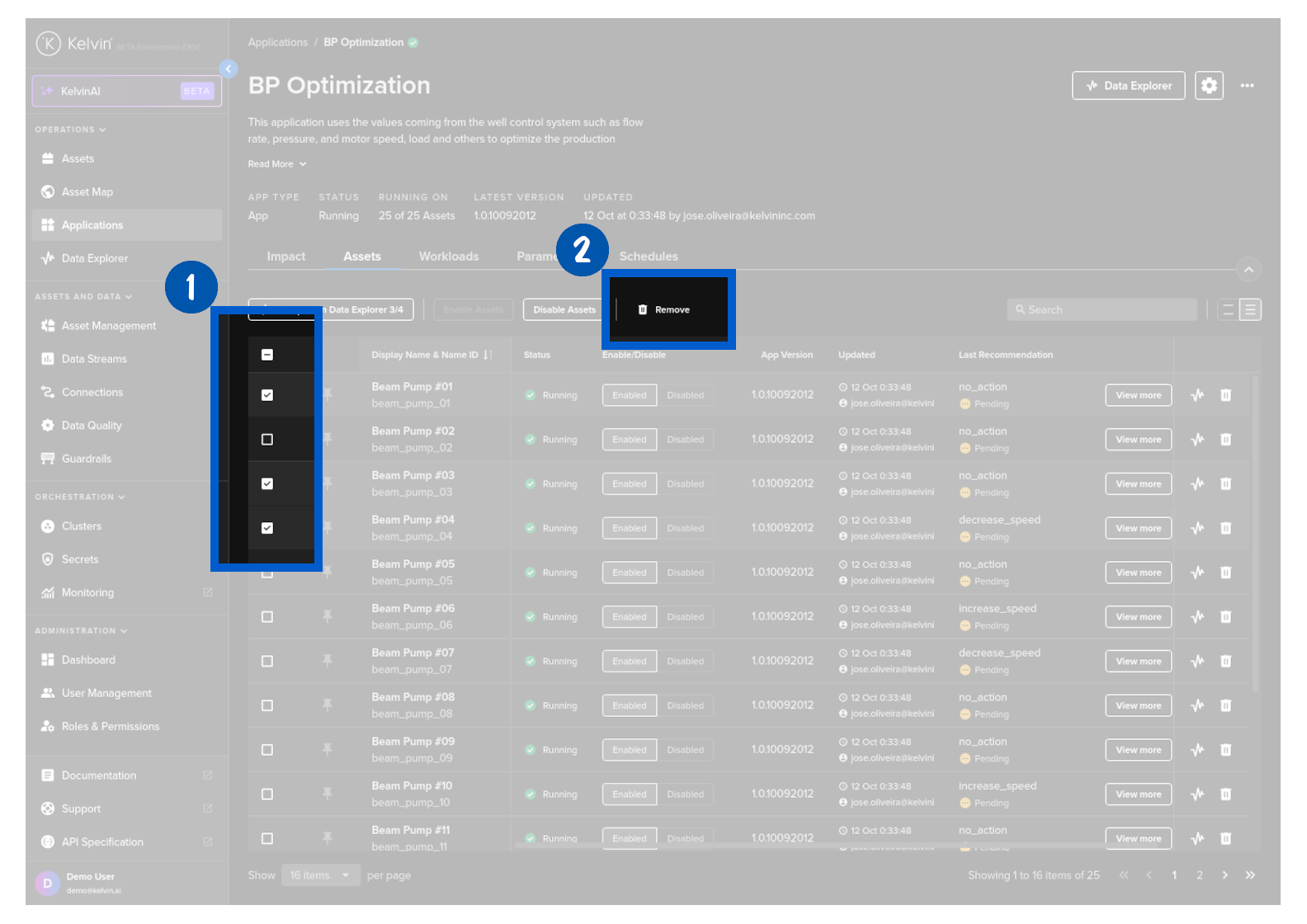 Use the check boxes on the left side of each row in the Asset list to select all the Assets you want to remove.