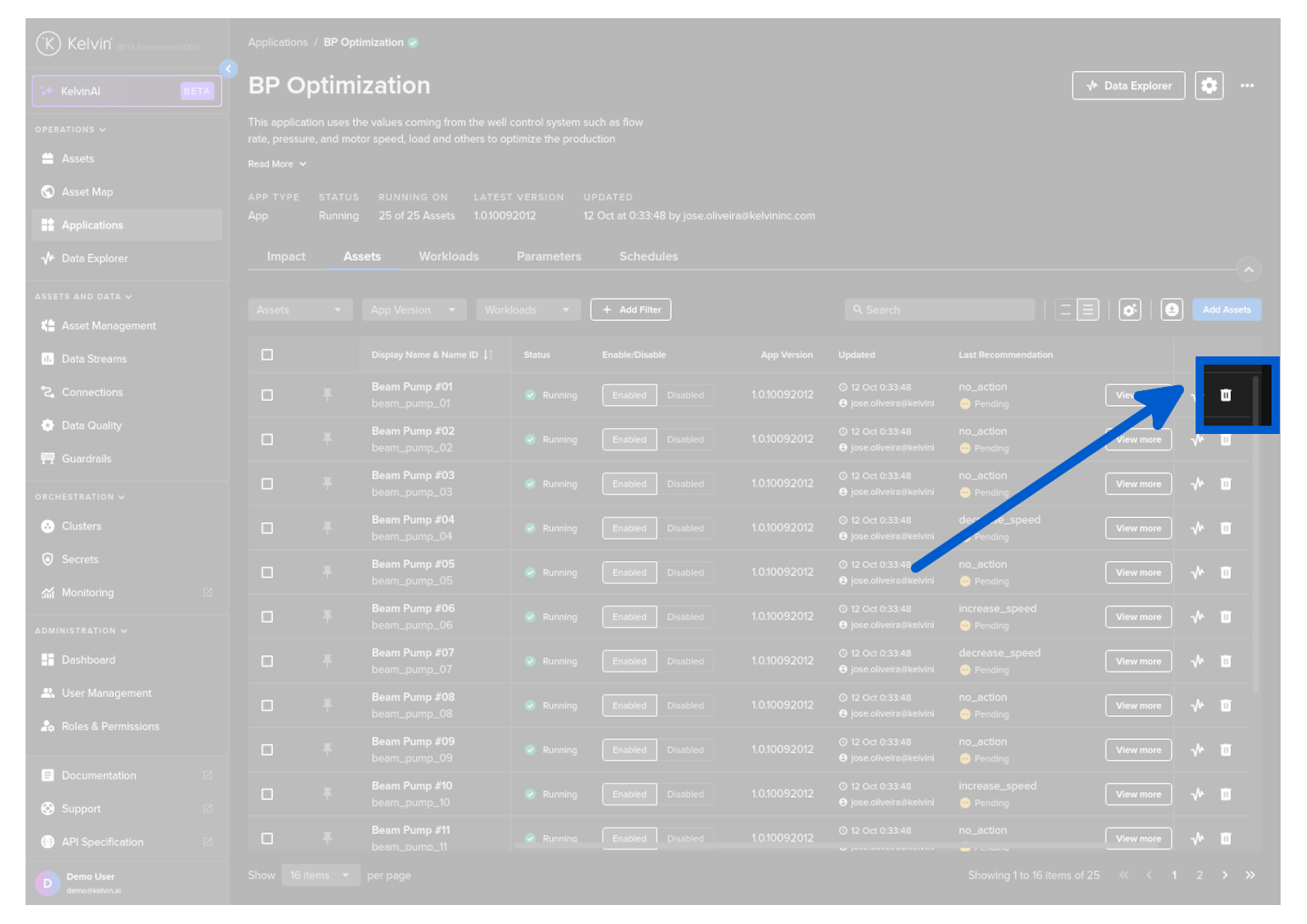 Find the Asset you want to remove, then click on the Remove icon on the far right hand side in the same row as the Asset Name.