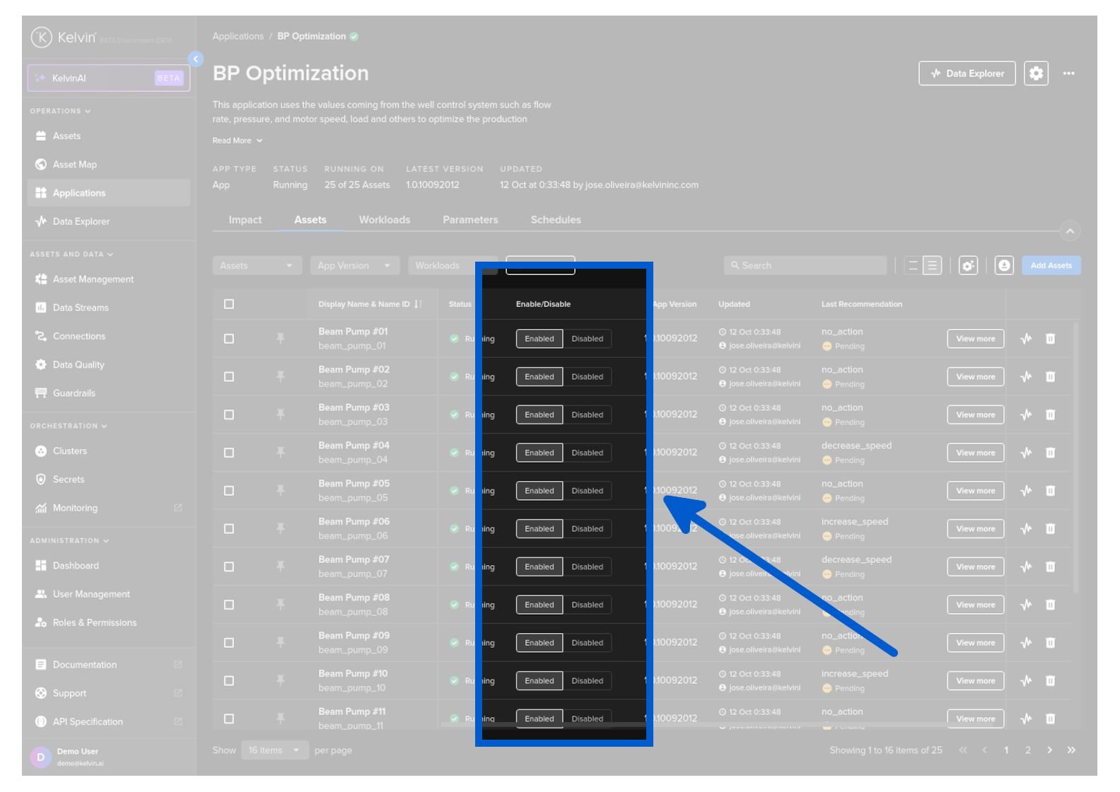 In Kelvin SmartApps™ you have the ability to enable or disable each Asset individually in a Kelvin SmartApp™.