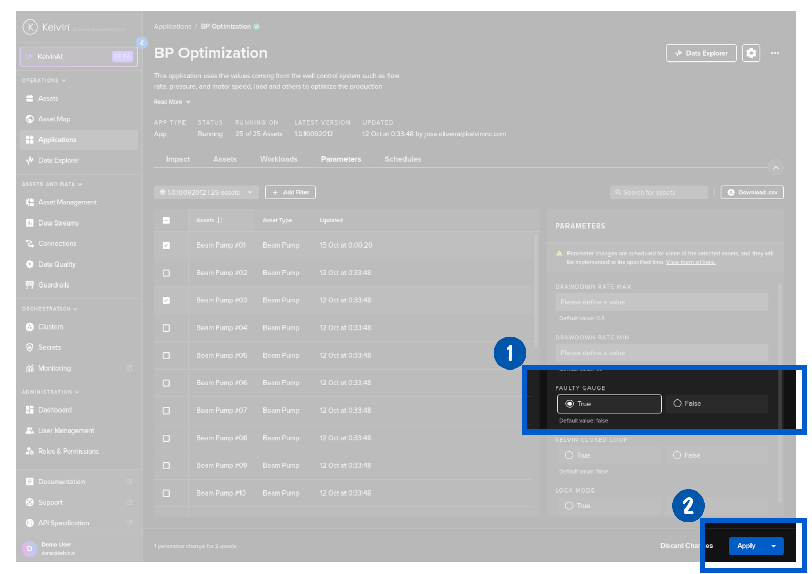 When controlling your Assets with Kelvin SmartApps™, there are times when temporary parameter setting adjustments are necessary for optimal performance, such as during planned maintenance periods or planned production changes.