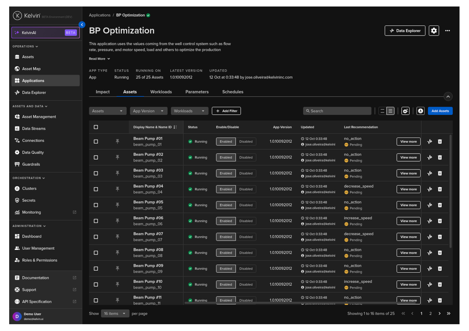 A Kelvin SmartApp™ can be processing many thousands of Assets at the same time. Kelvin UI makes it easy to monitor the status of all these Assets and quickly add or delete Assets to the Kelvin SmartApp™.