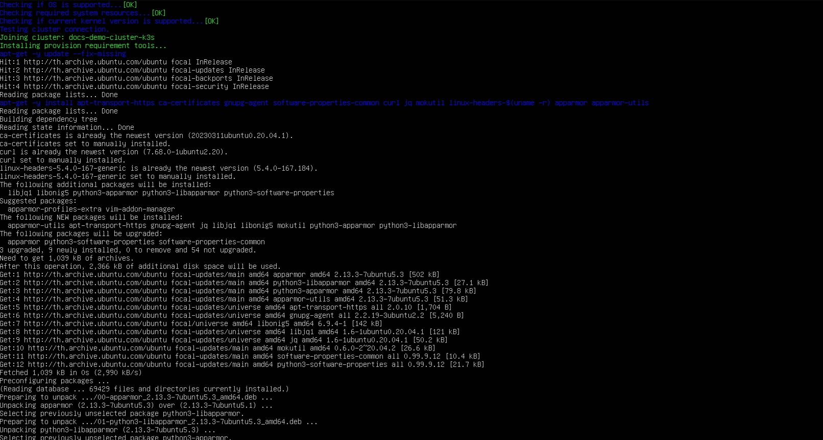 - All the Kelvin core services will be installed and configured in the Cluster. This is all done in the background and you will not see any feedback on the command line.