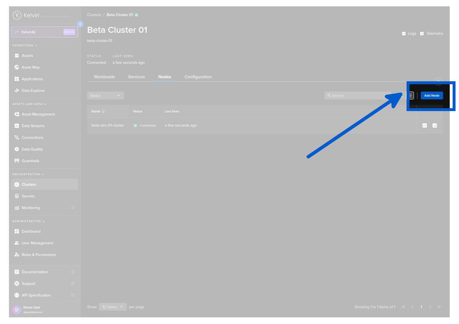 - When all configurations are completed successfully, then the status for the Node in the Kelvin UI will change from Disconnected to Connected.