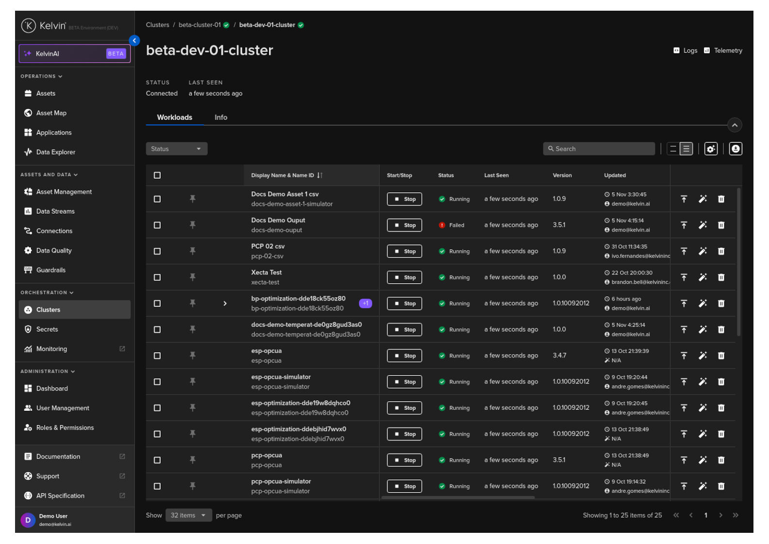Details on the workloads screen is the same as the workloads screen for the Cluster.