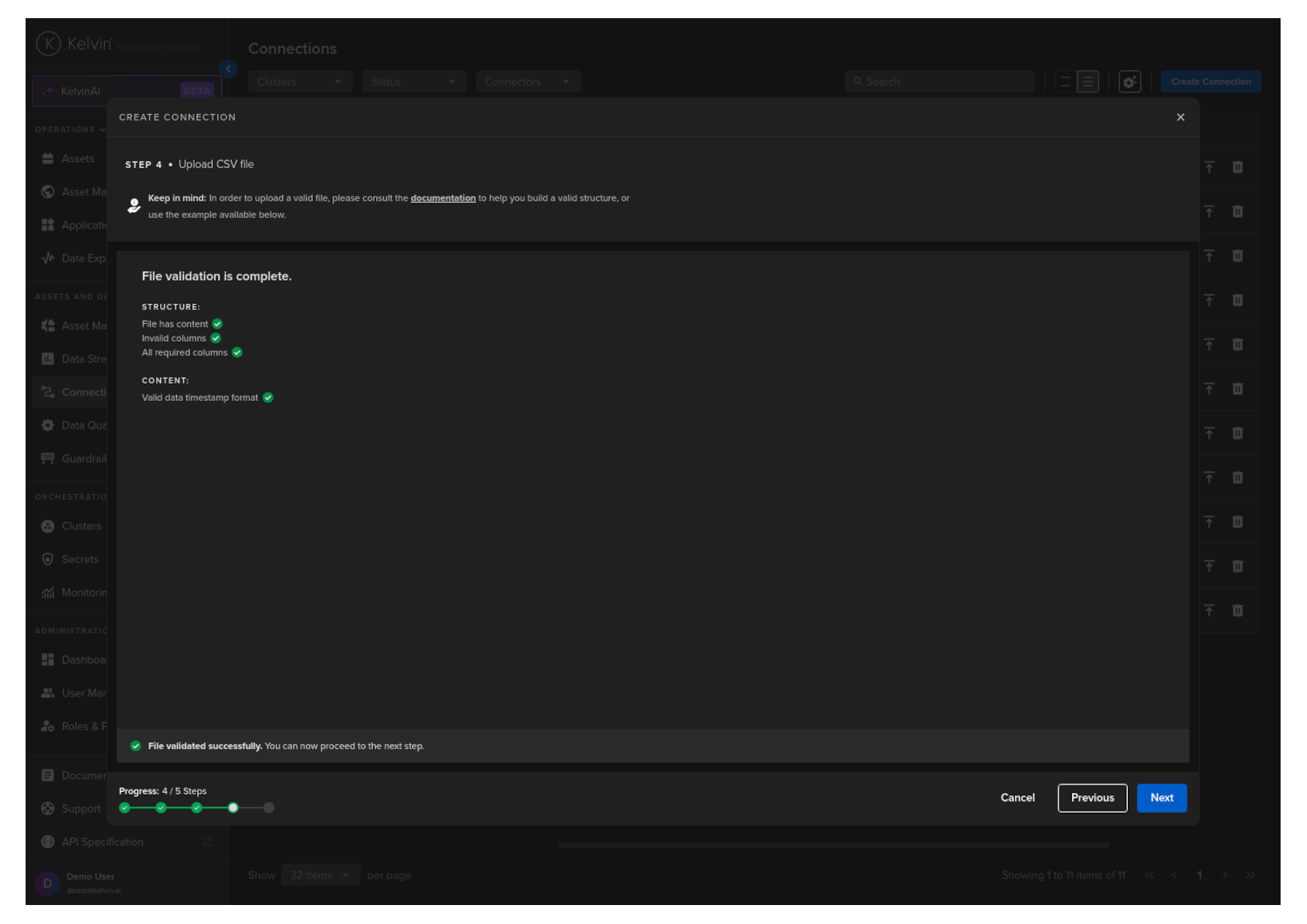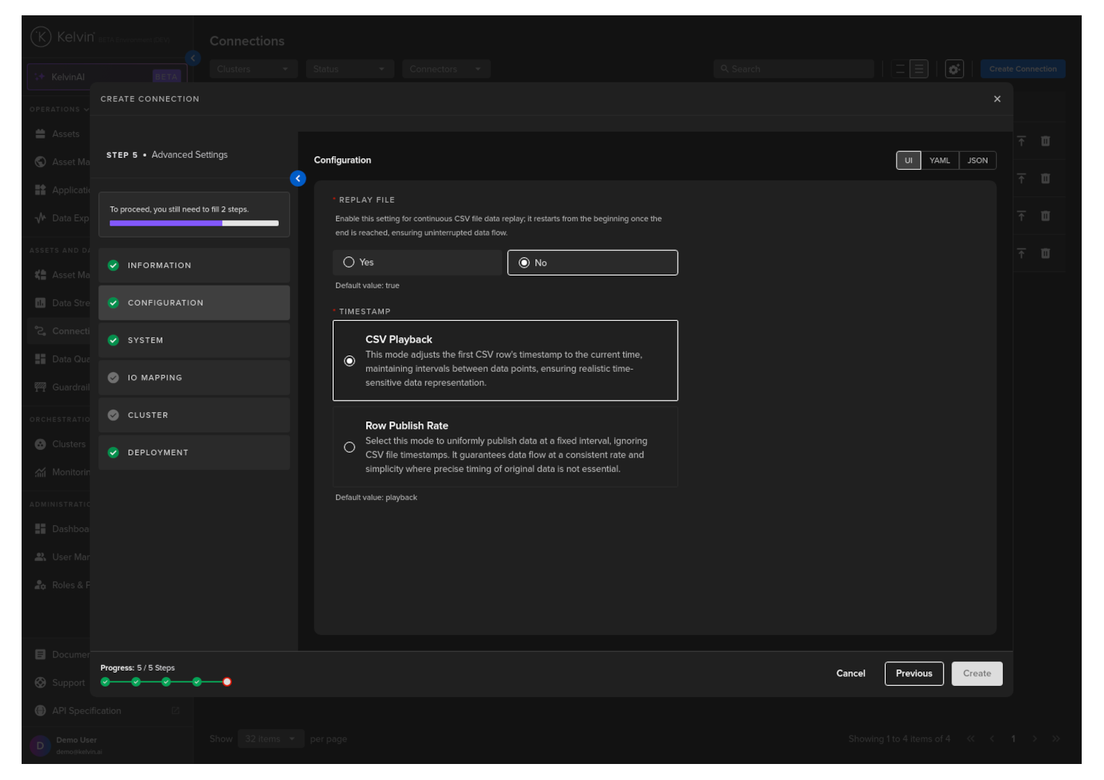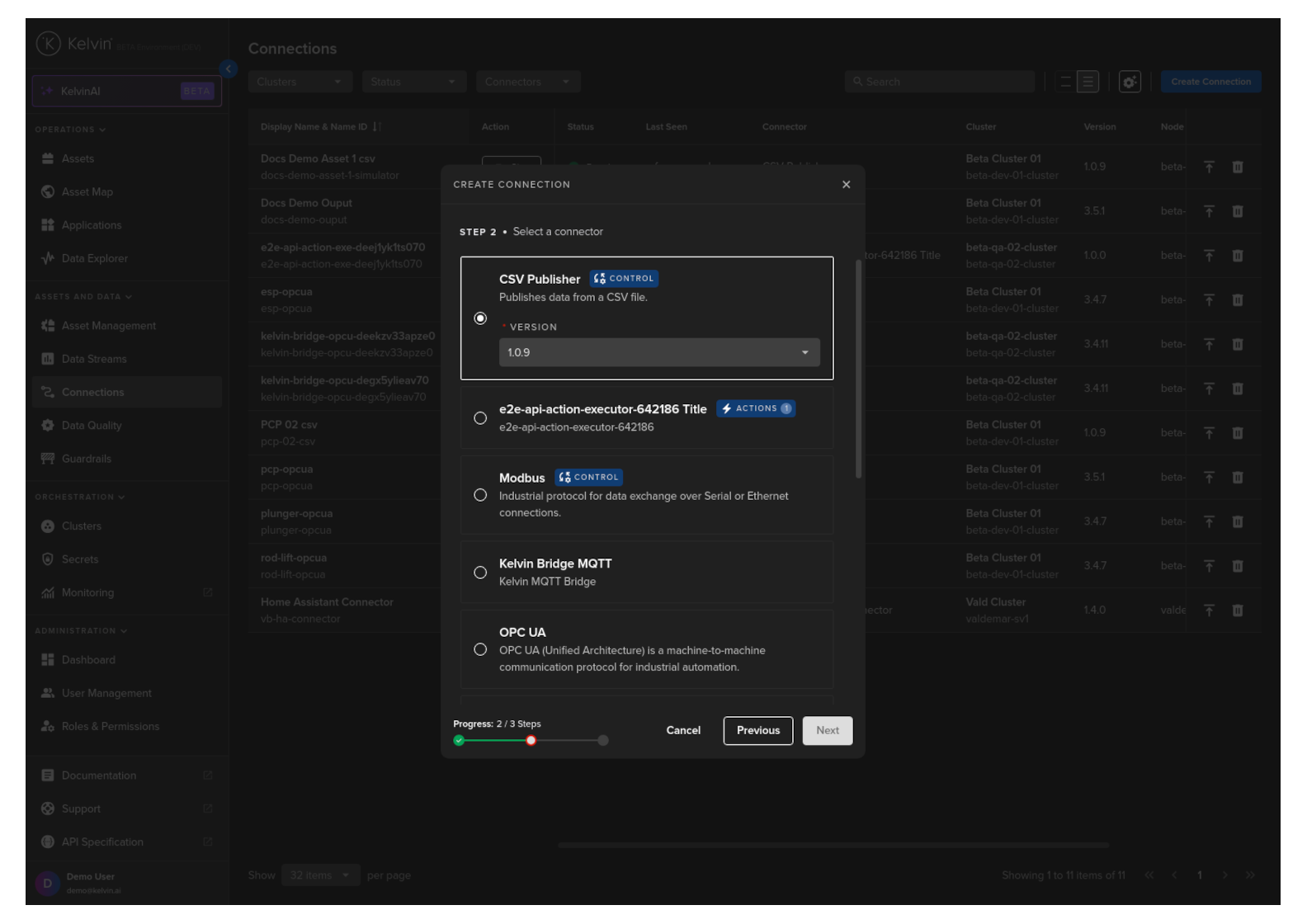 Select the Kelvin CSV Publisher Connector option, select a Version and click Next.