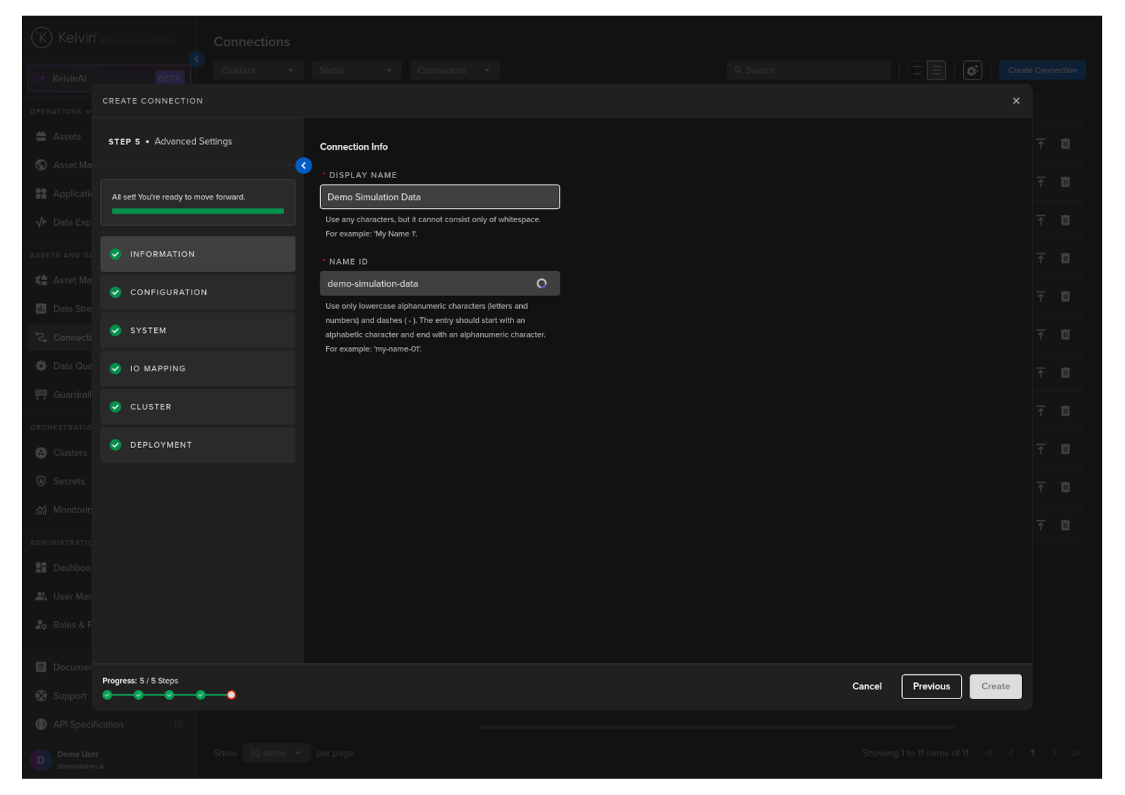 The Connection Name text input will be automatically converted and filled in as you type in the Display Name section. The conversion ensures the Connection Name only contains lowercase alphanumeric characters and ., _ or - characters.