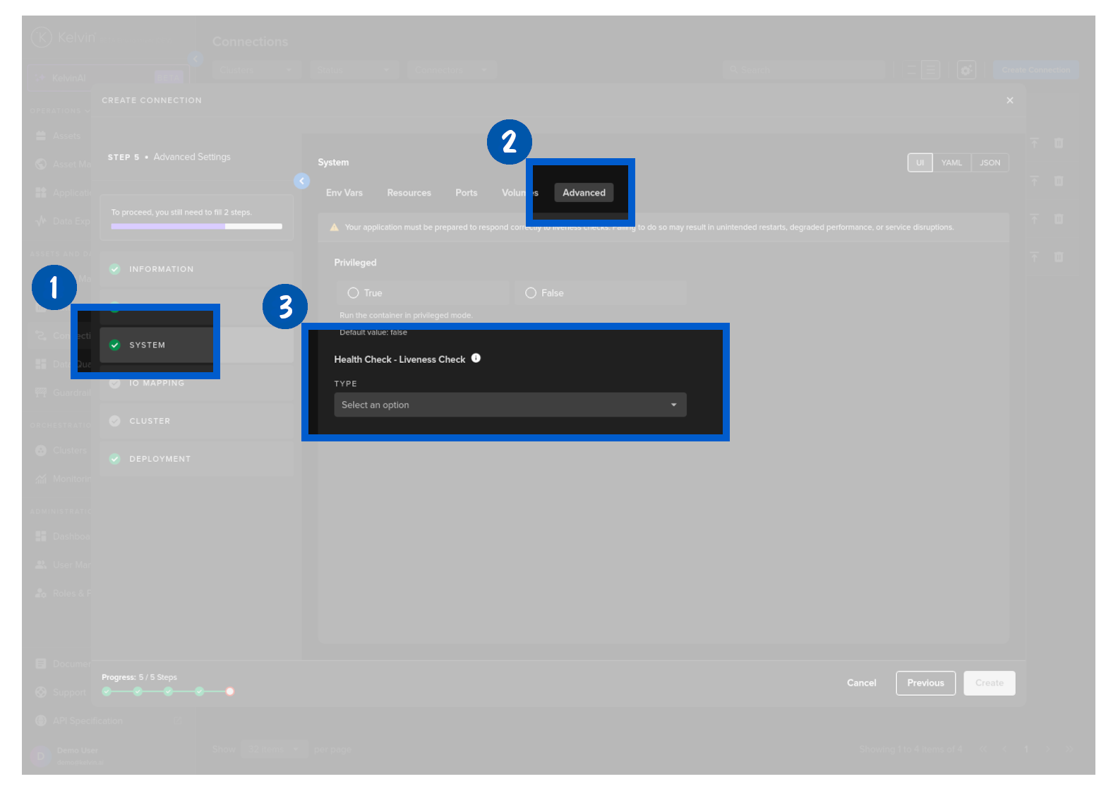 Optionally choose a health check service for your Workload. These are Kubernetes liveness probes and detailed information can be found on the Kubernetes Website.