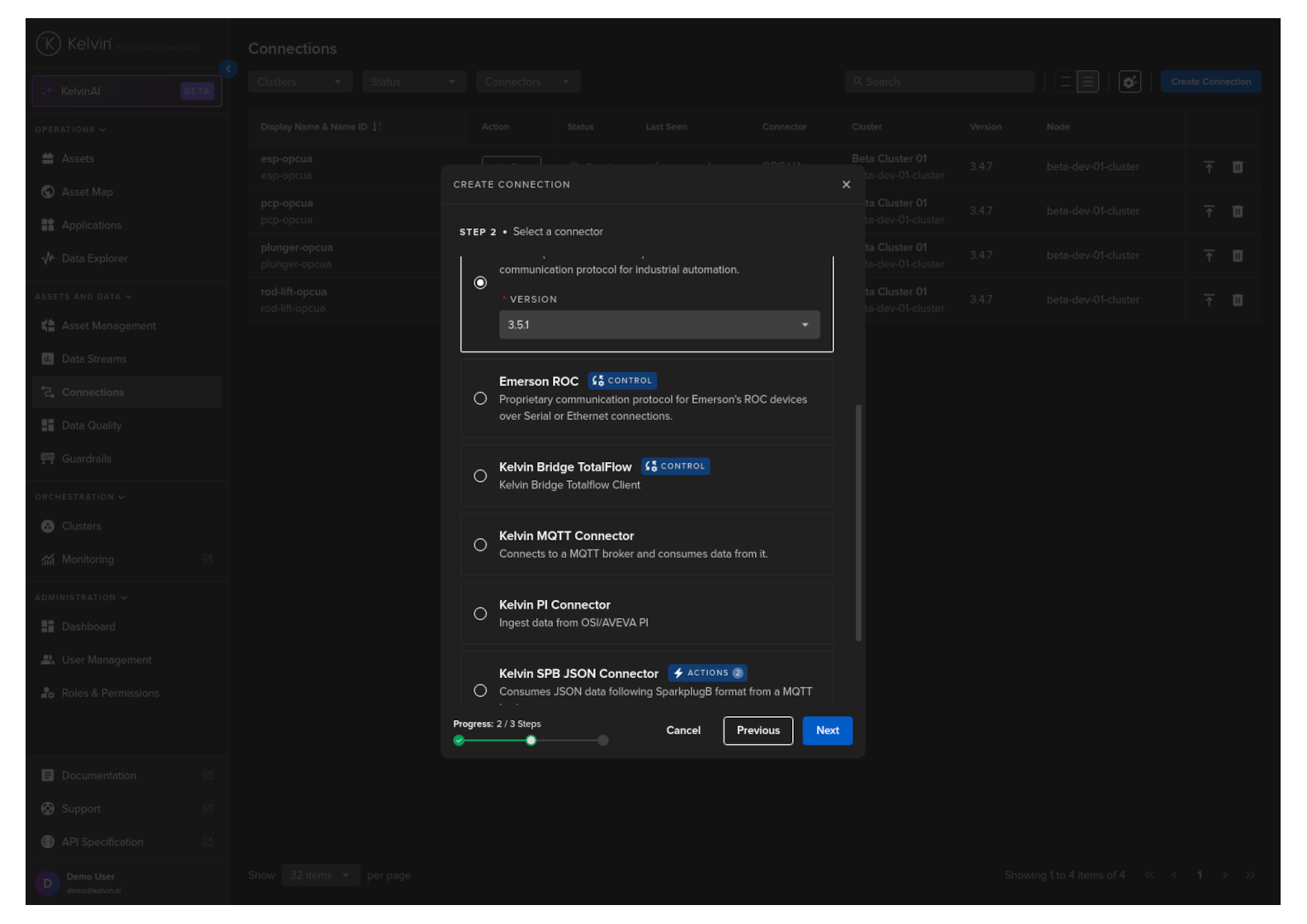 Developers can create custom Connection Applications for the Kelvin Platform.