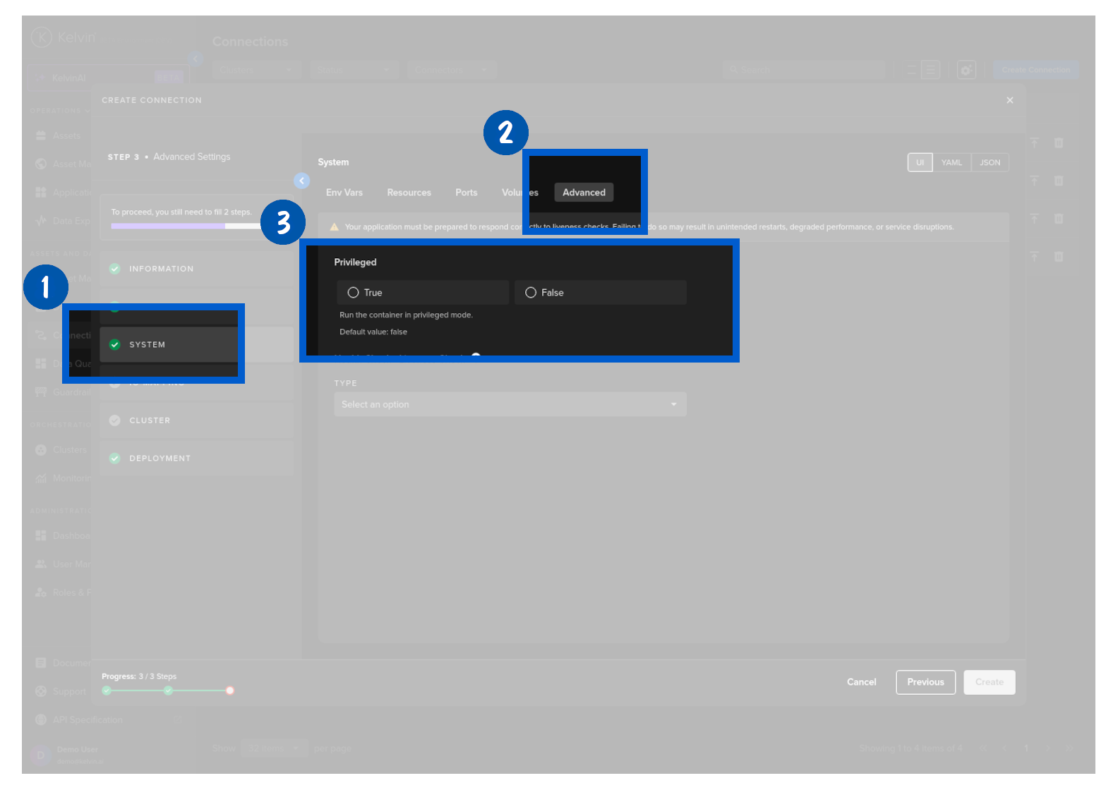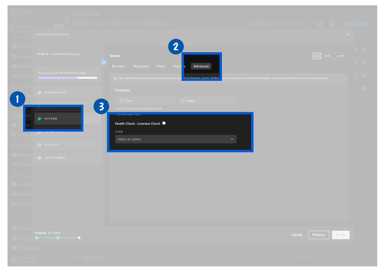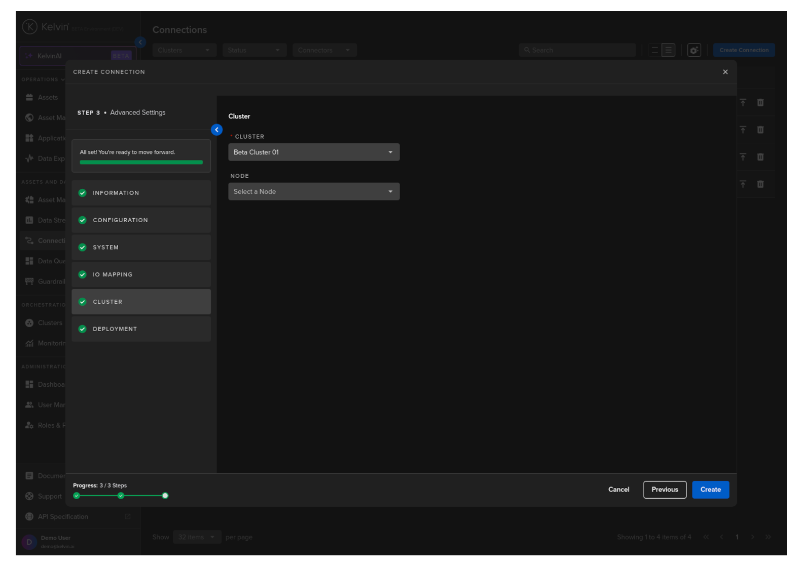 Then select which Cluster to deploy the new Connector to.