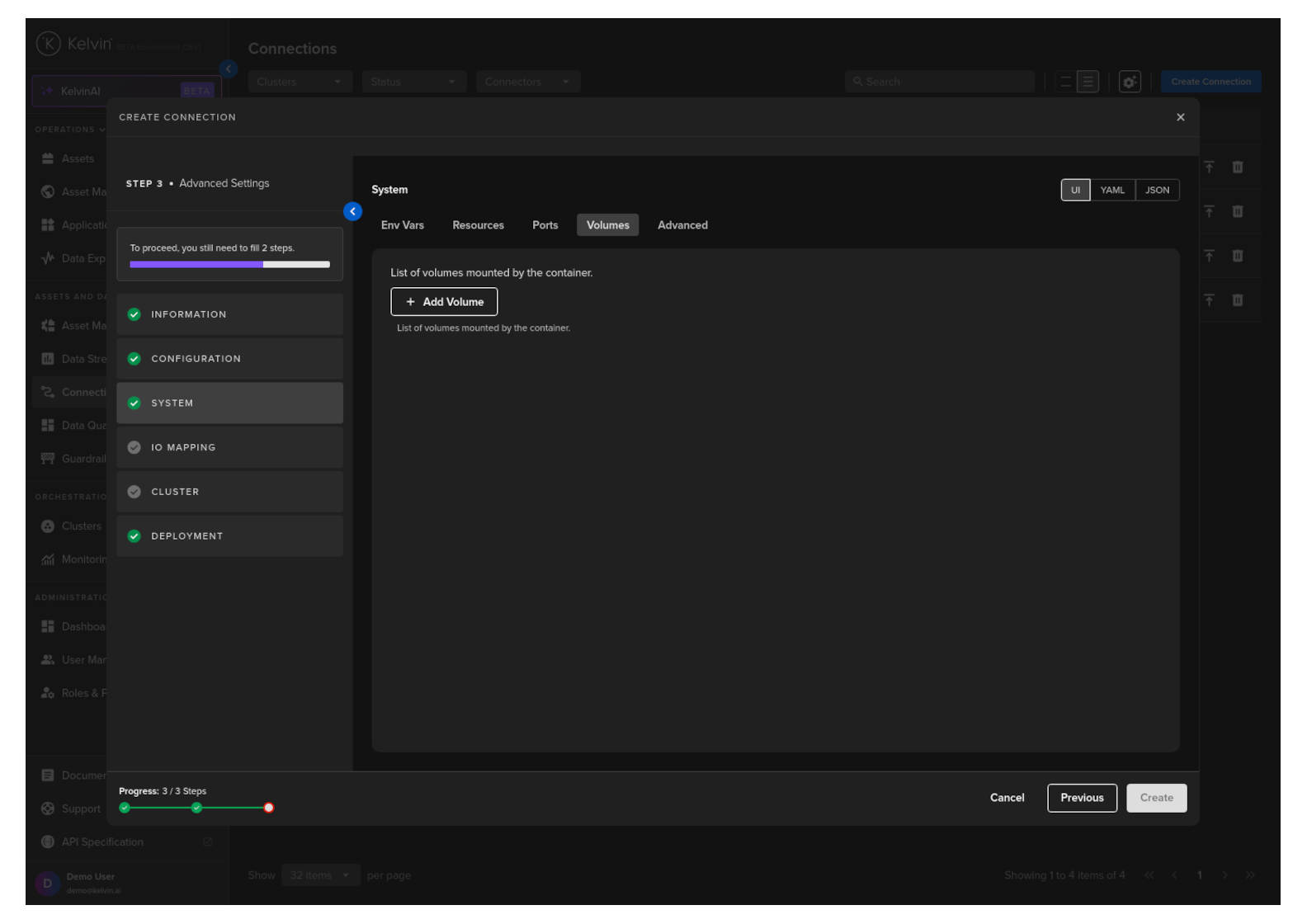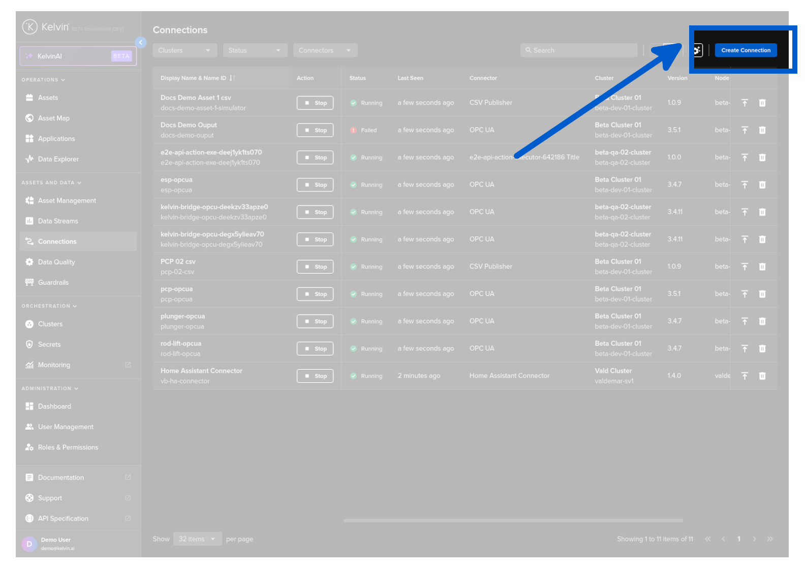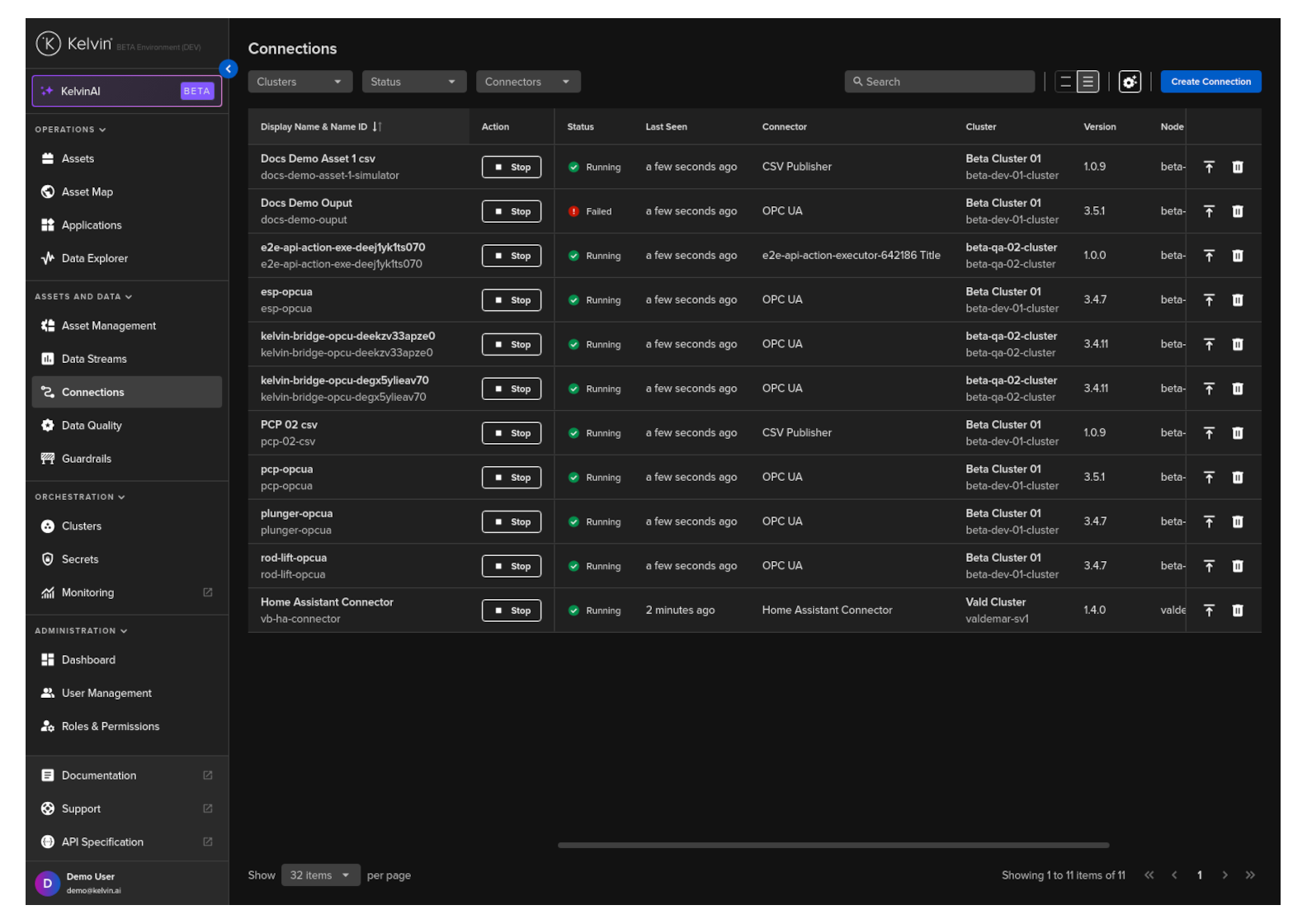 Then in Kelvin UI under Connections you will see your Connection deployed and running.