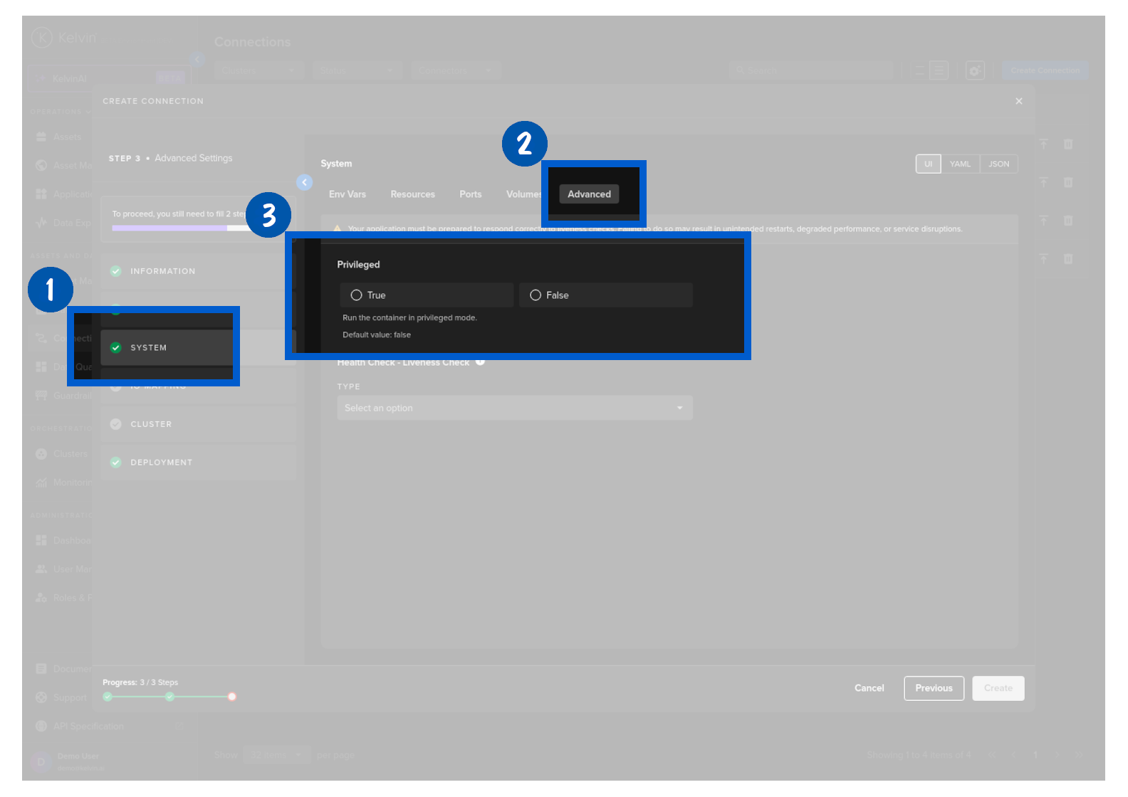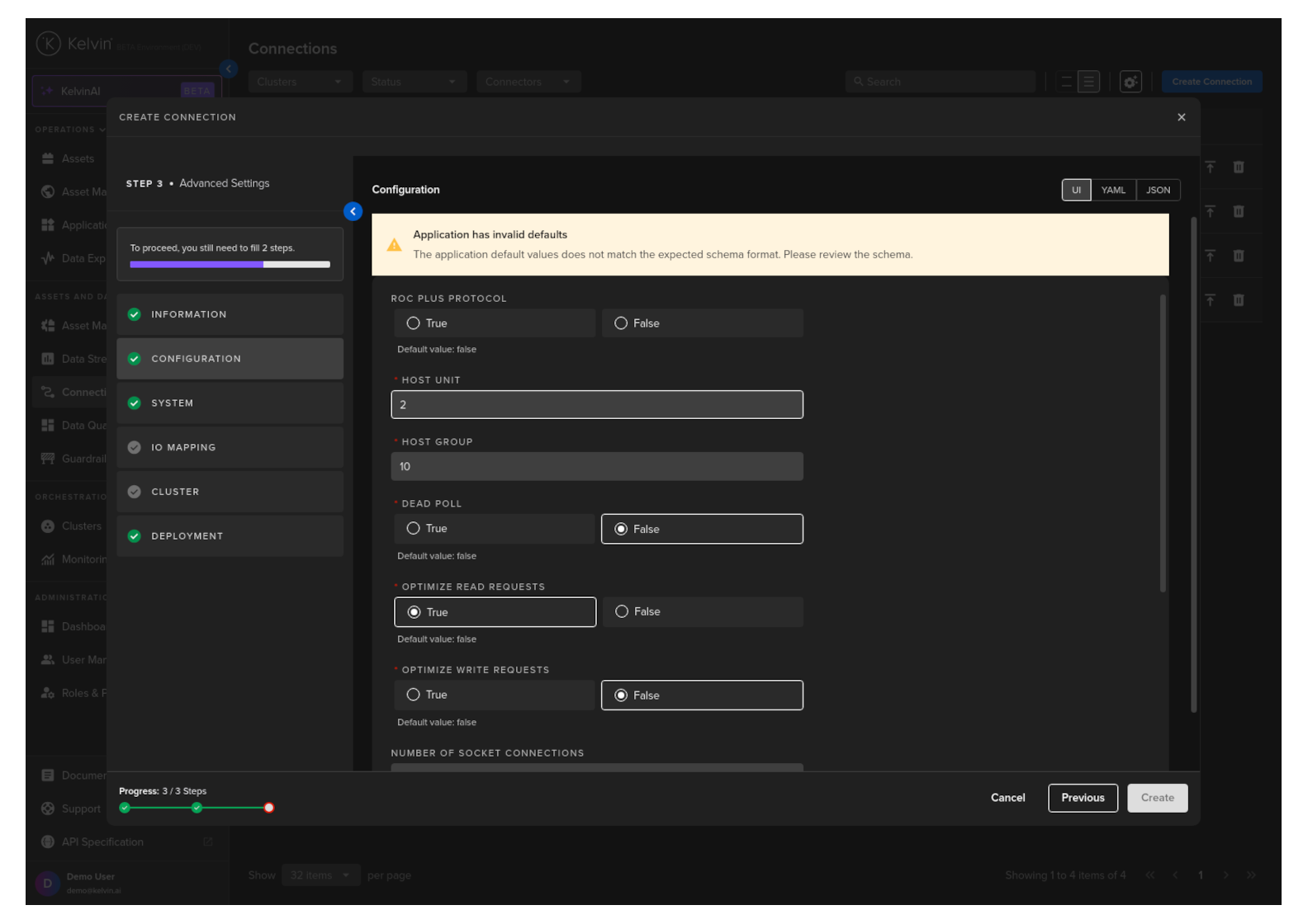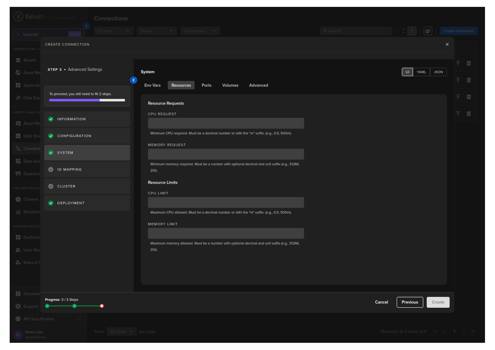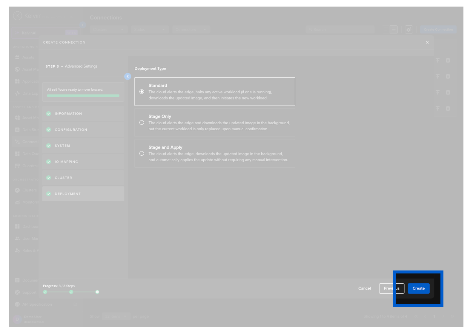 Then in Kelvin UI under Connections you will see your Connection deployed and running.