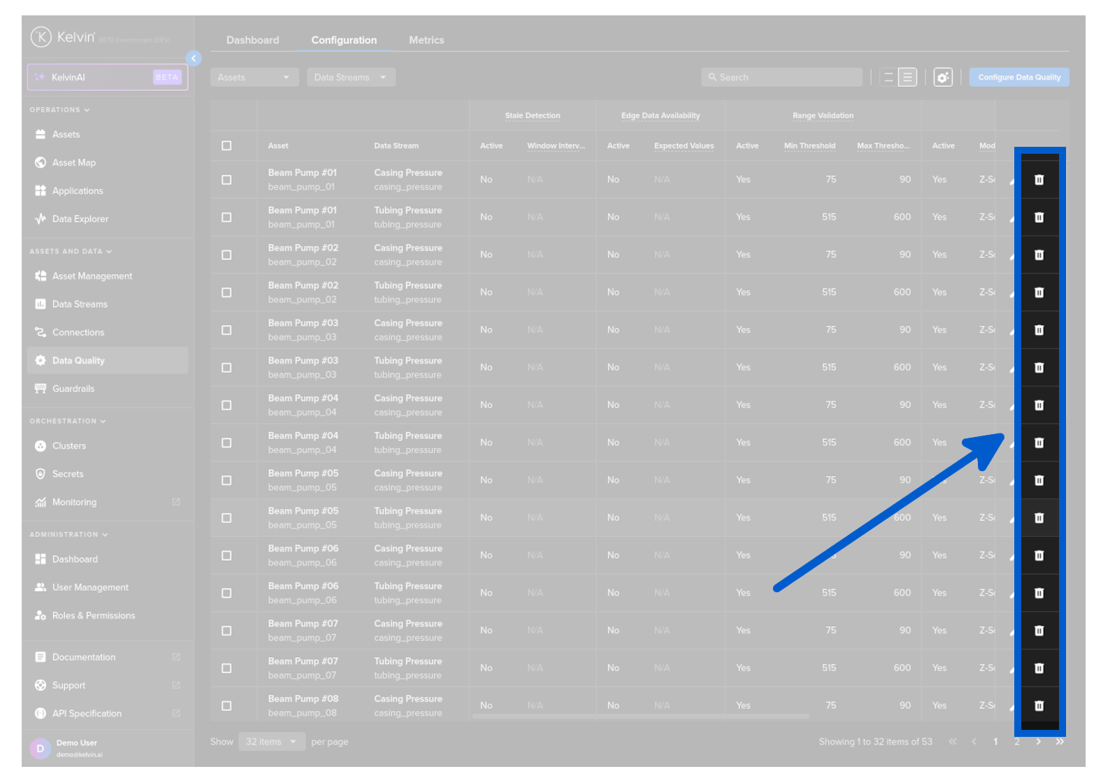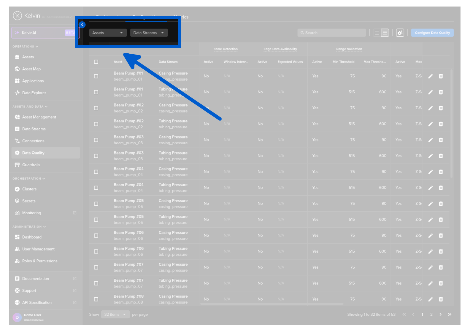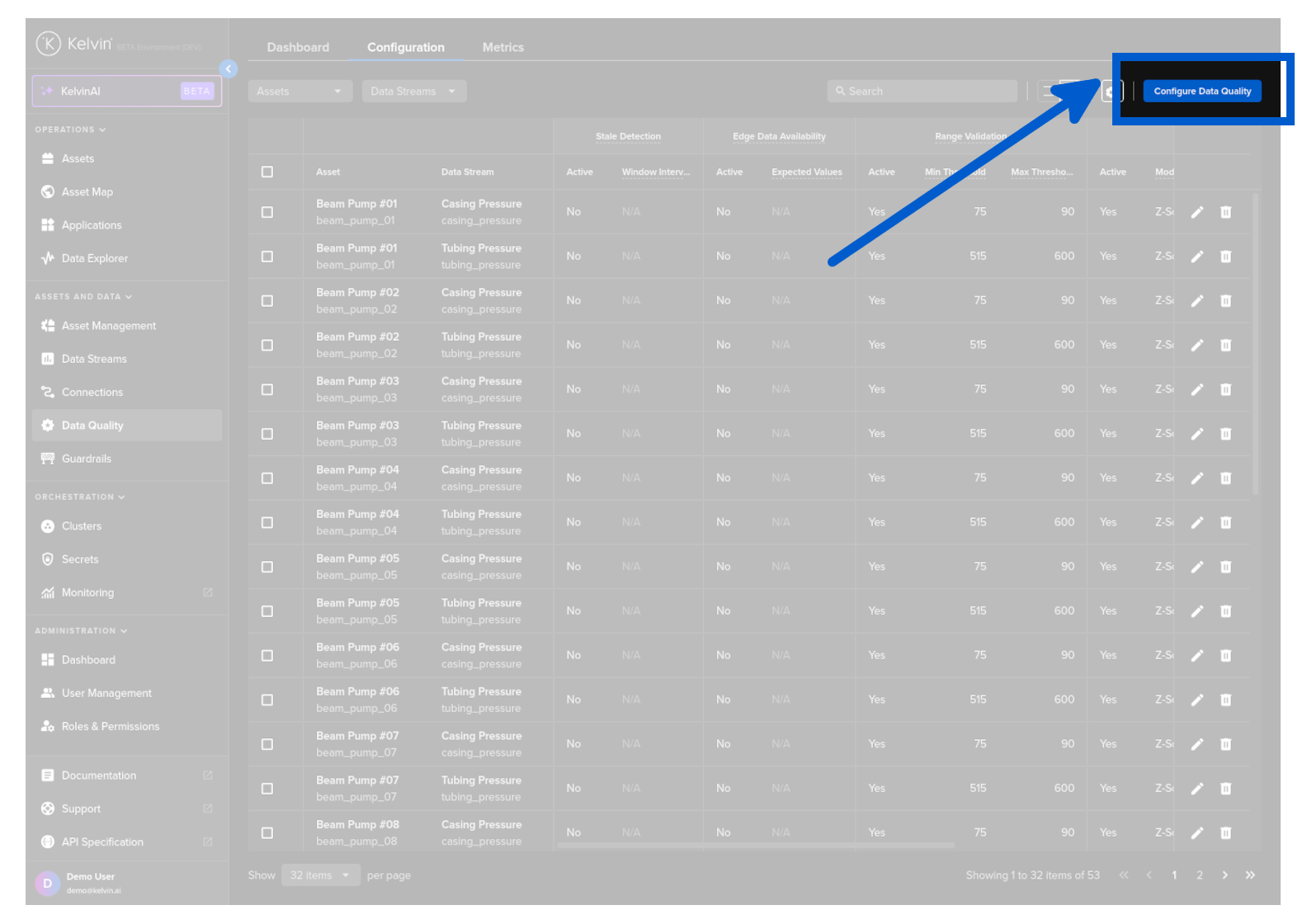 To enable Data Quality metrics on any of your Asset / Data Streams, you will need to configure them in the Data Quality Configuration.