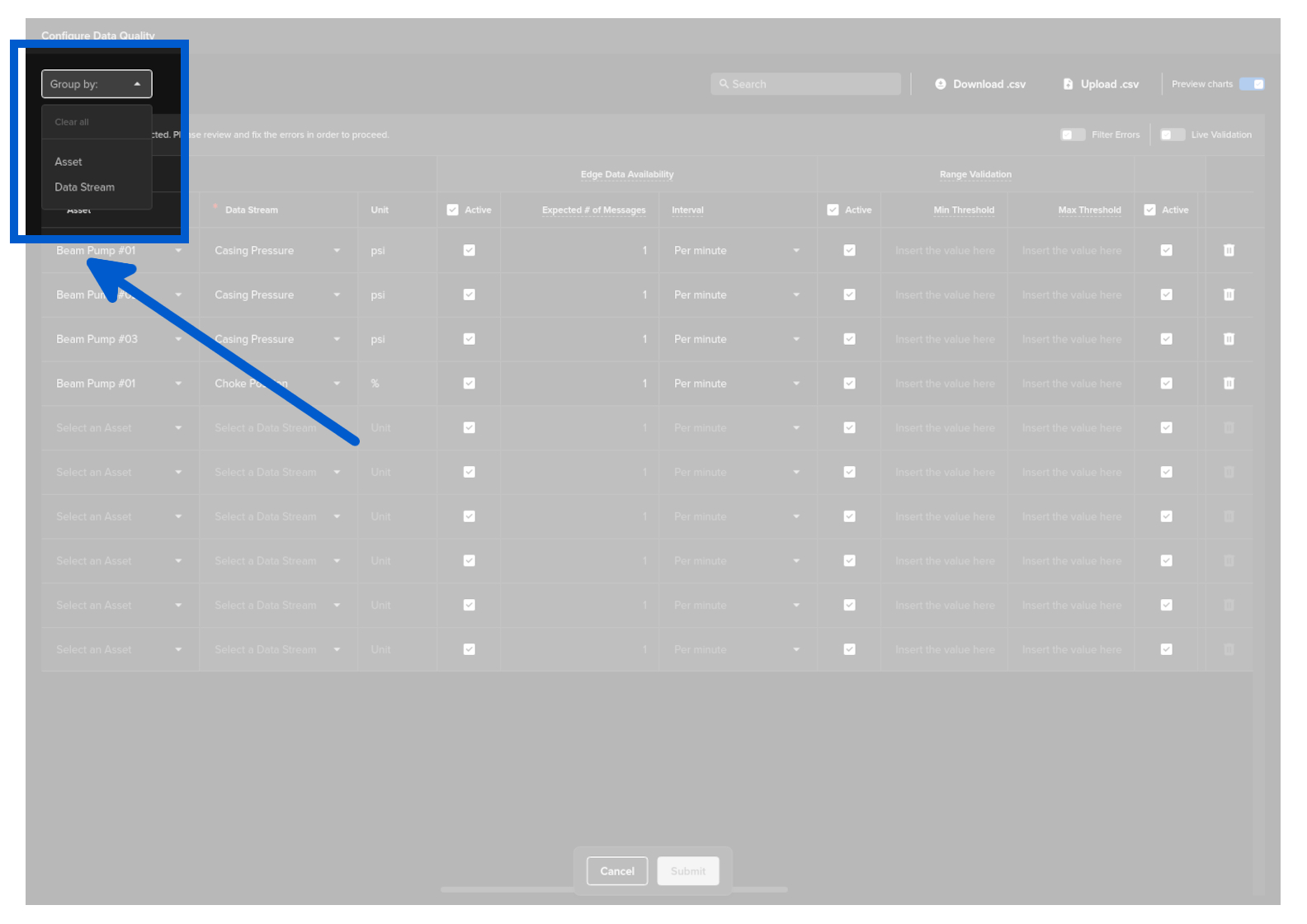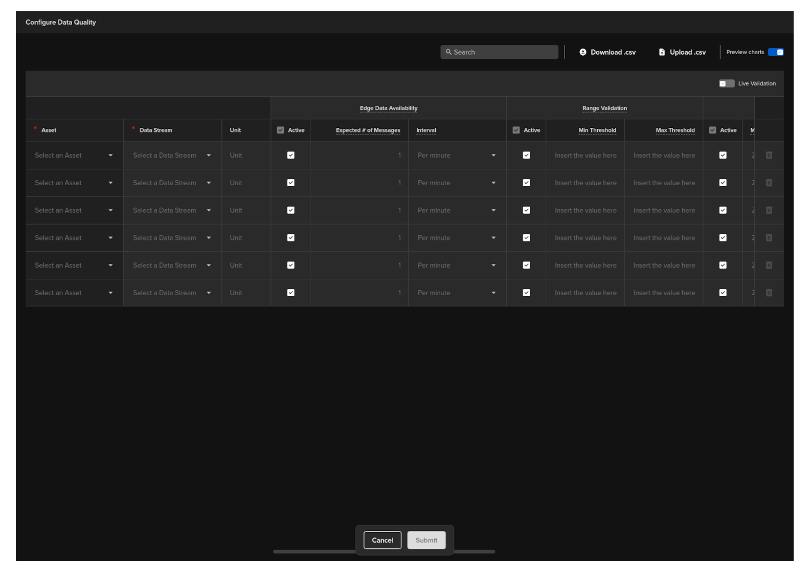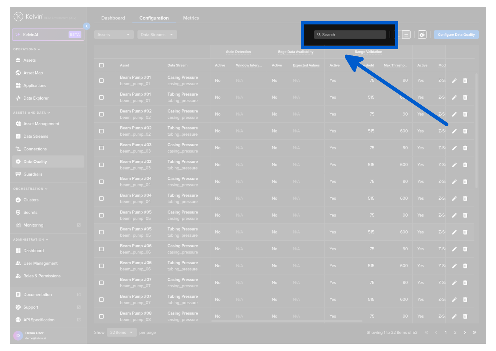 To enable Data Quality metrics on any of your Asset / Data Streams, you will need to configure them in the Data Quality Configuration.