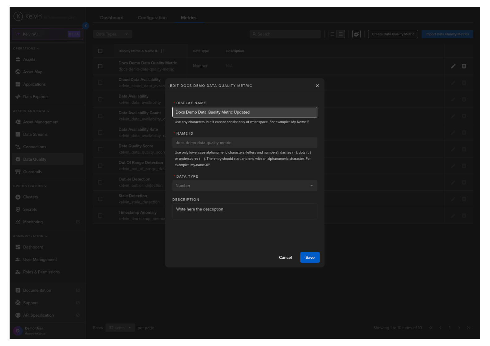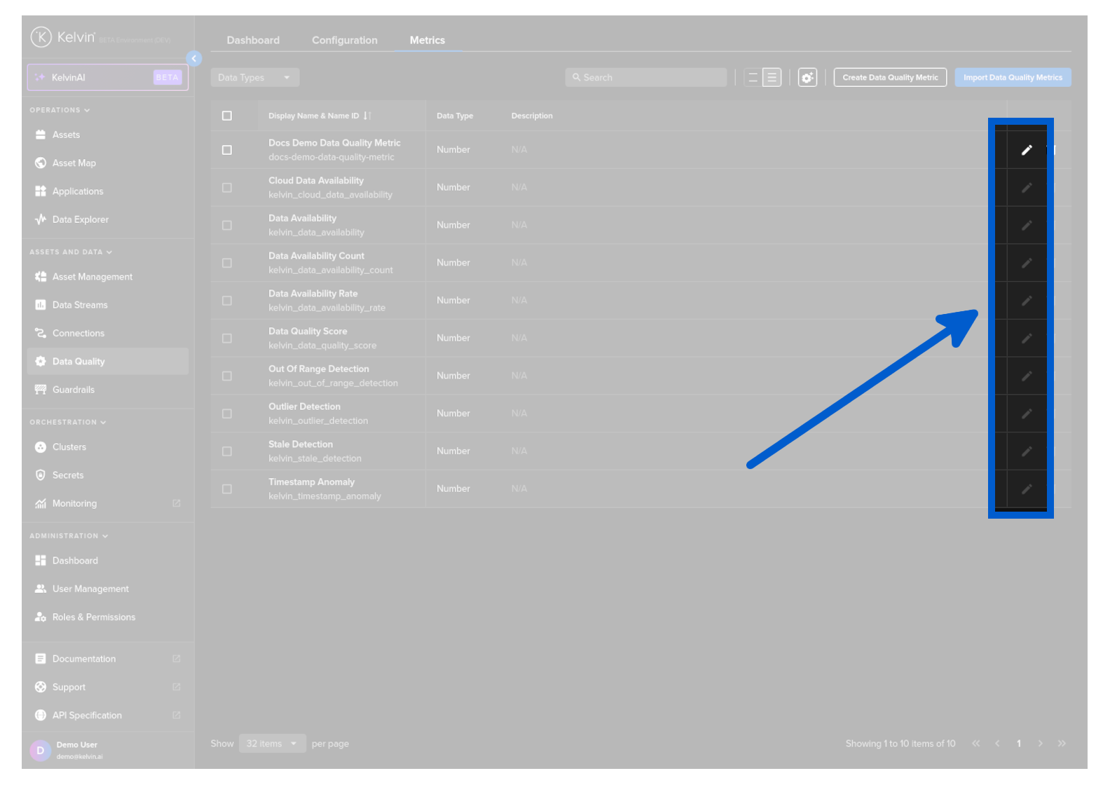 To edit a Data Quality Metric, click on the Edit icon .
