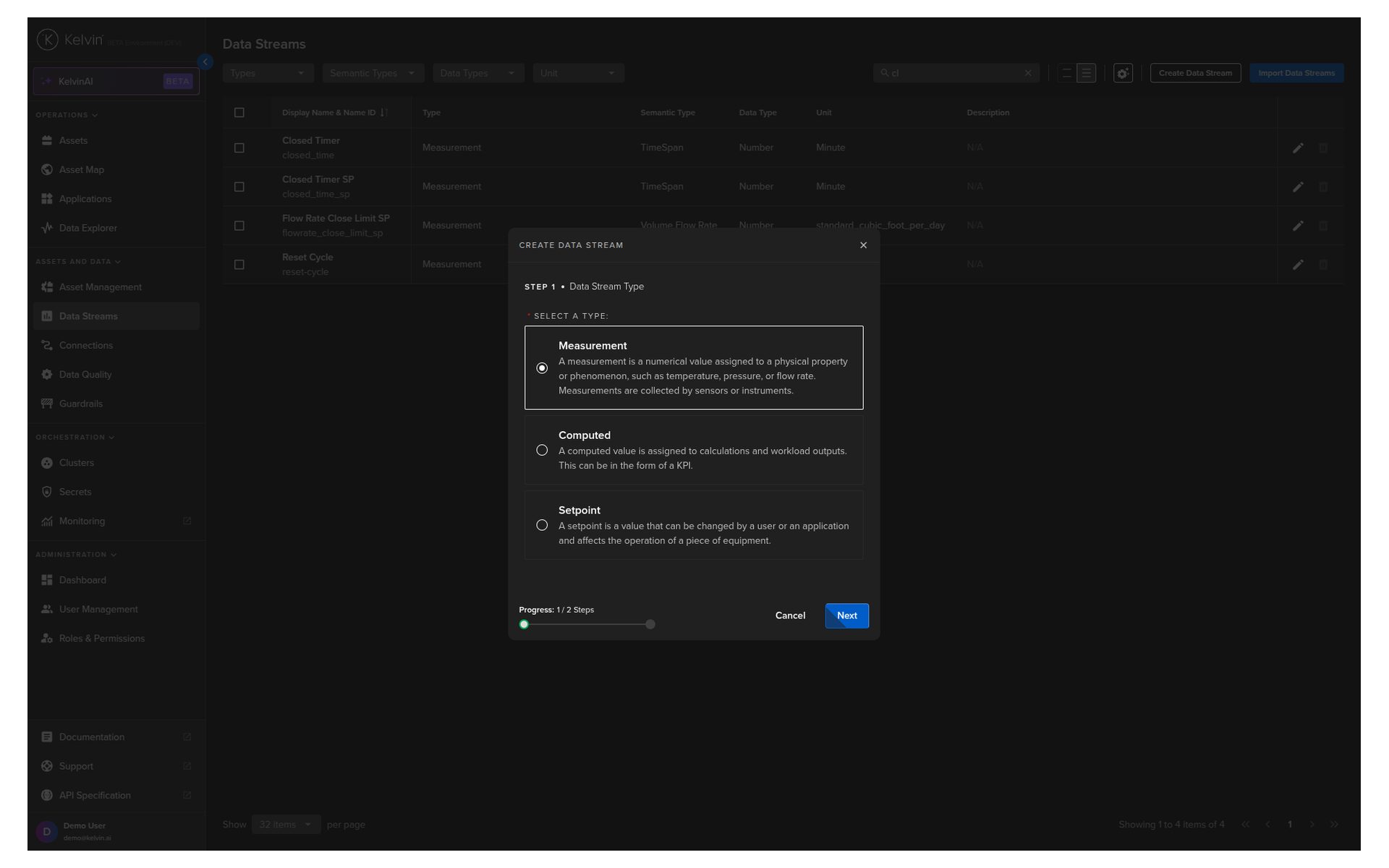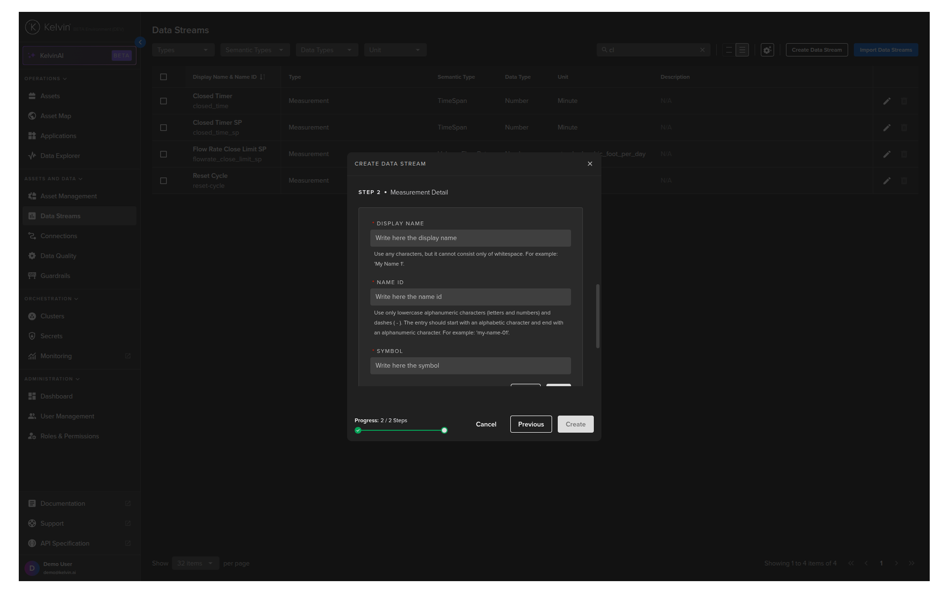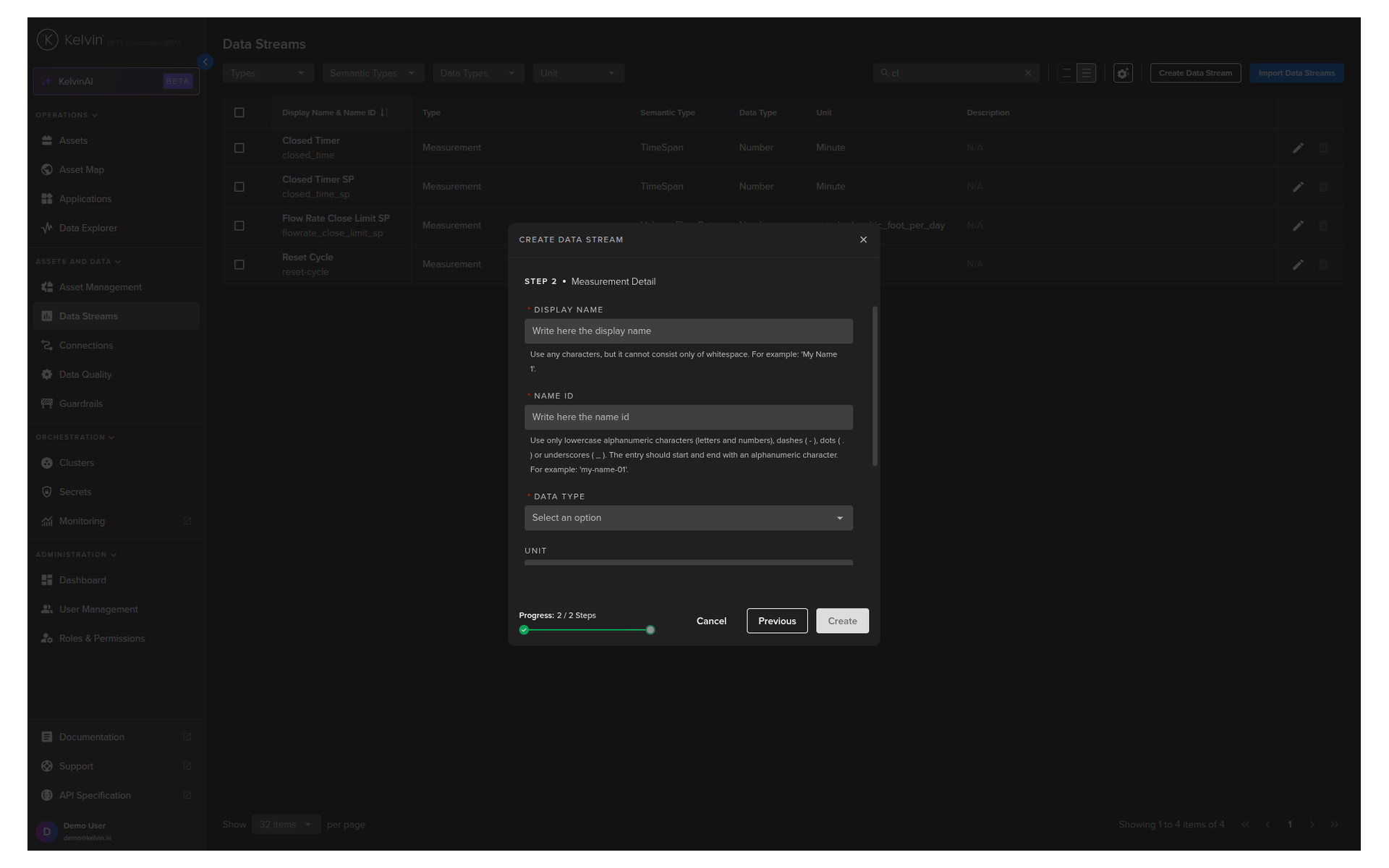 | Semantic Type | No | Provides context or deeper meaning behind the data, beyond just its format or structure. Check Kelvin API for the full list of available semantic types. |