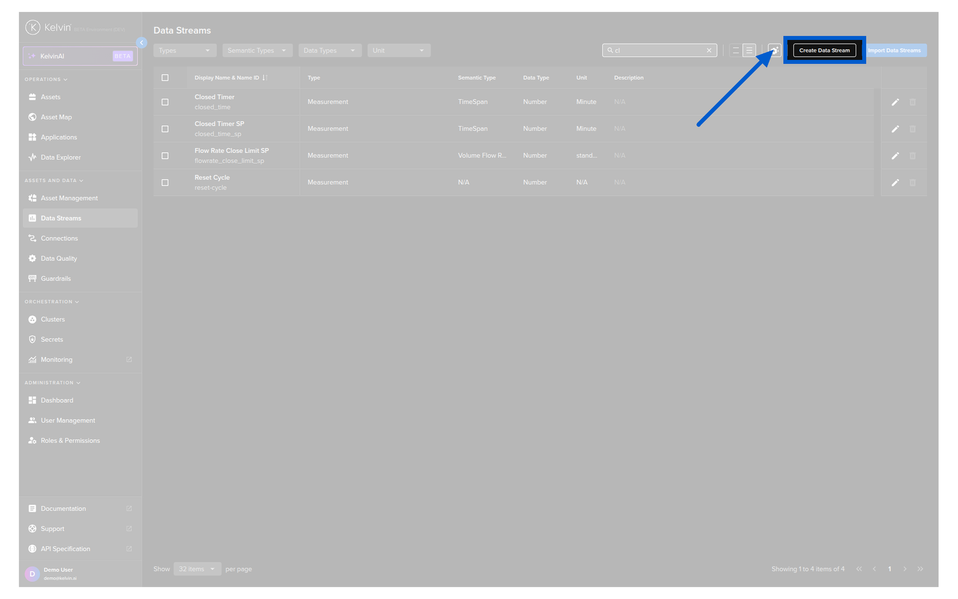 In this example we will create a Data Stream with the Semantic Type Pressure and with the name tubing_pressure.