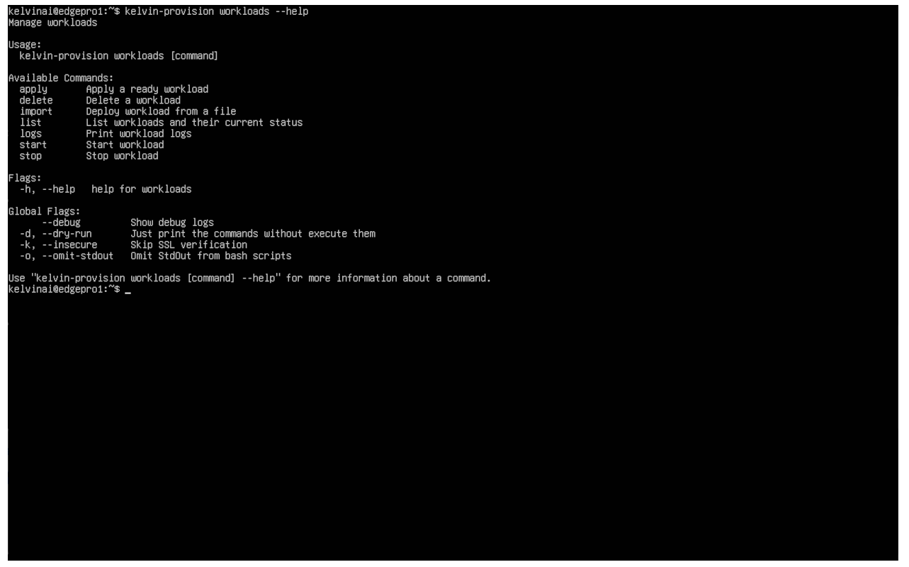 On this page you will only see the kelvin-provision commands that are associated with Workload tasks.