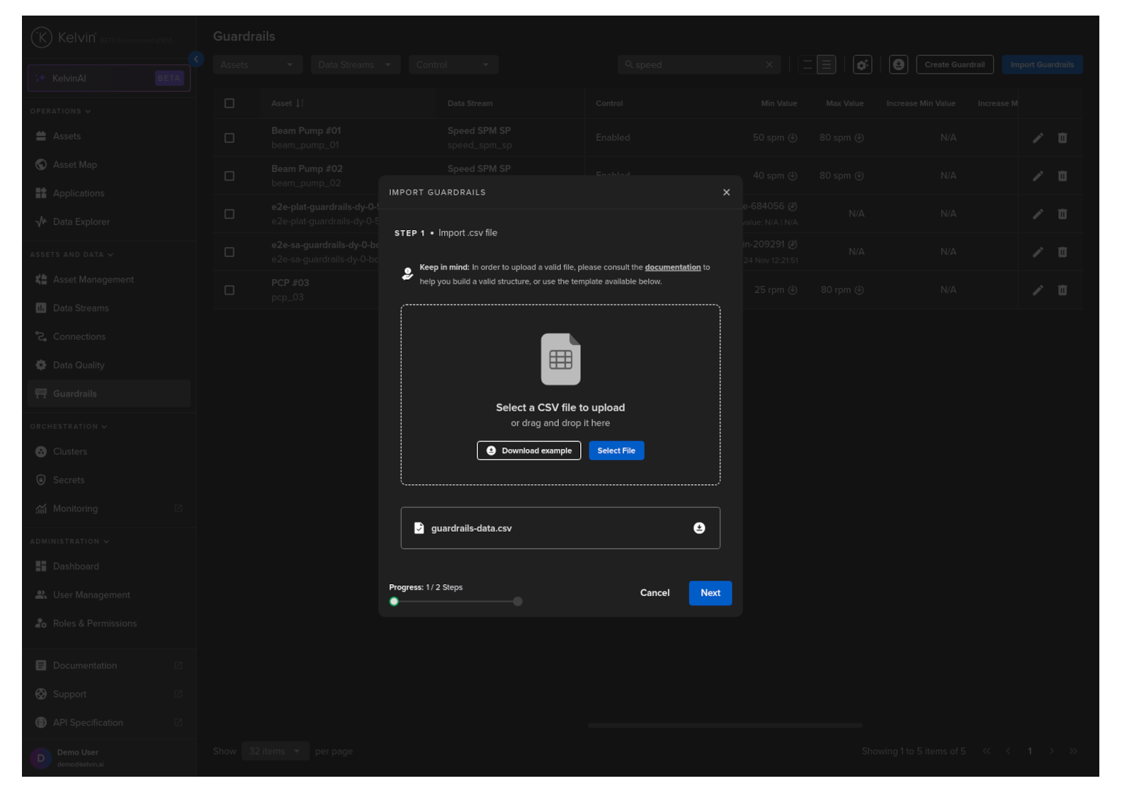 In Step 1 drag and drop your csv file of Guardrails and then click Next to go to Step 2.