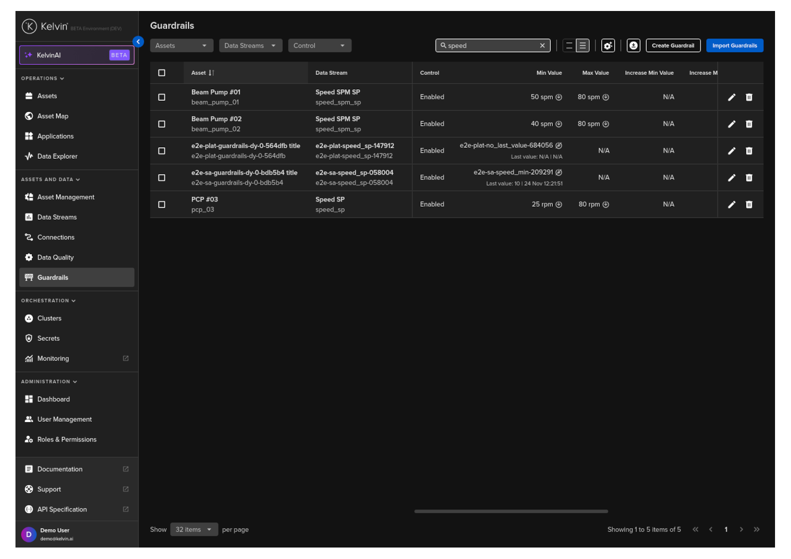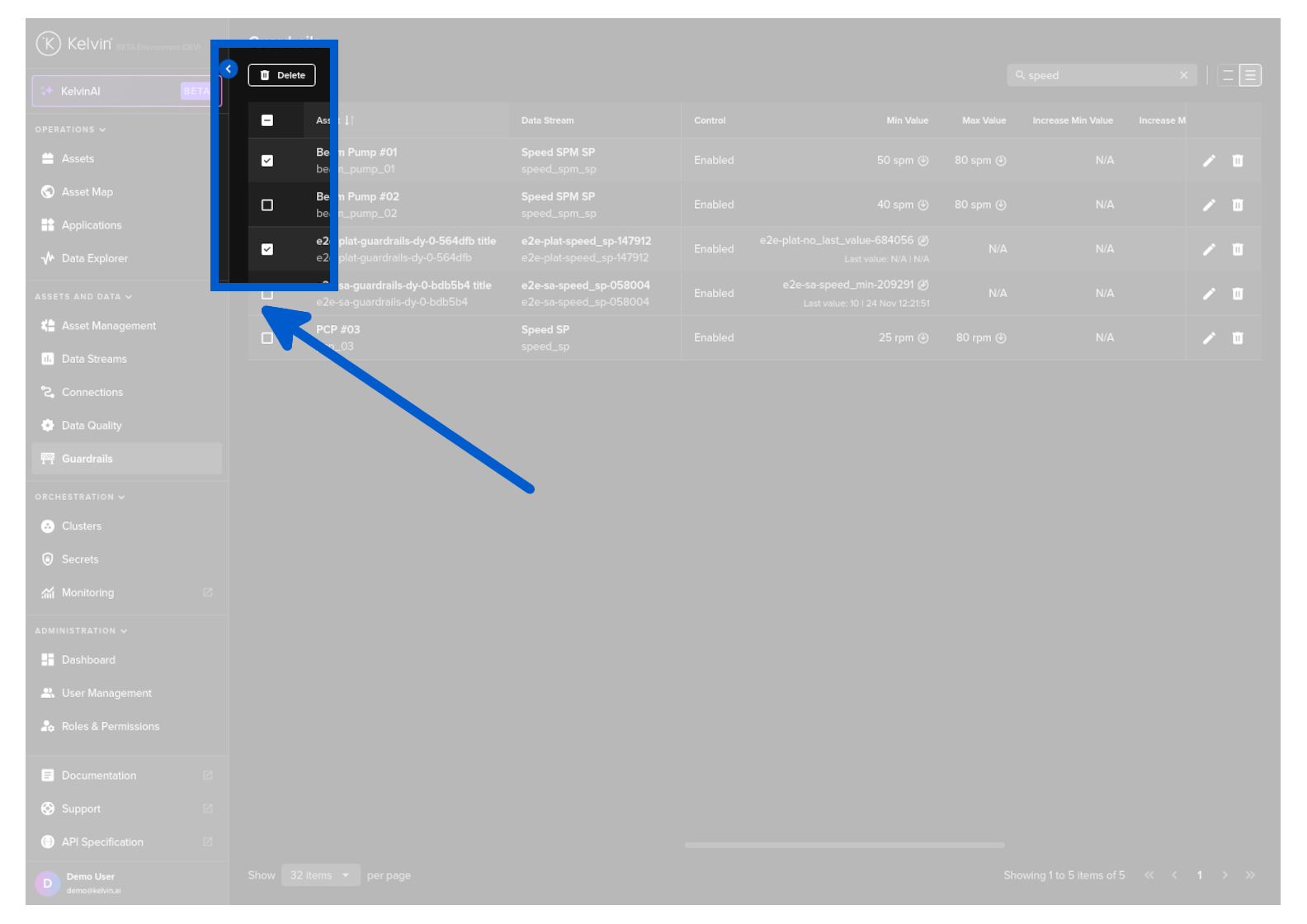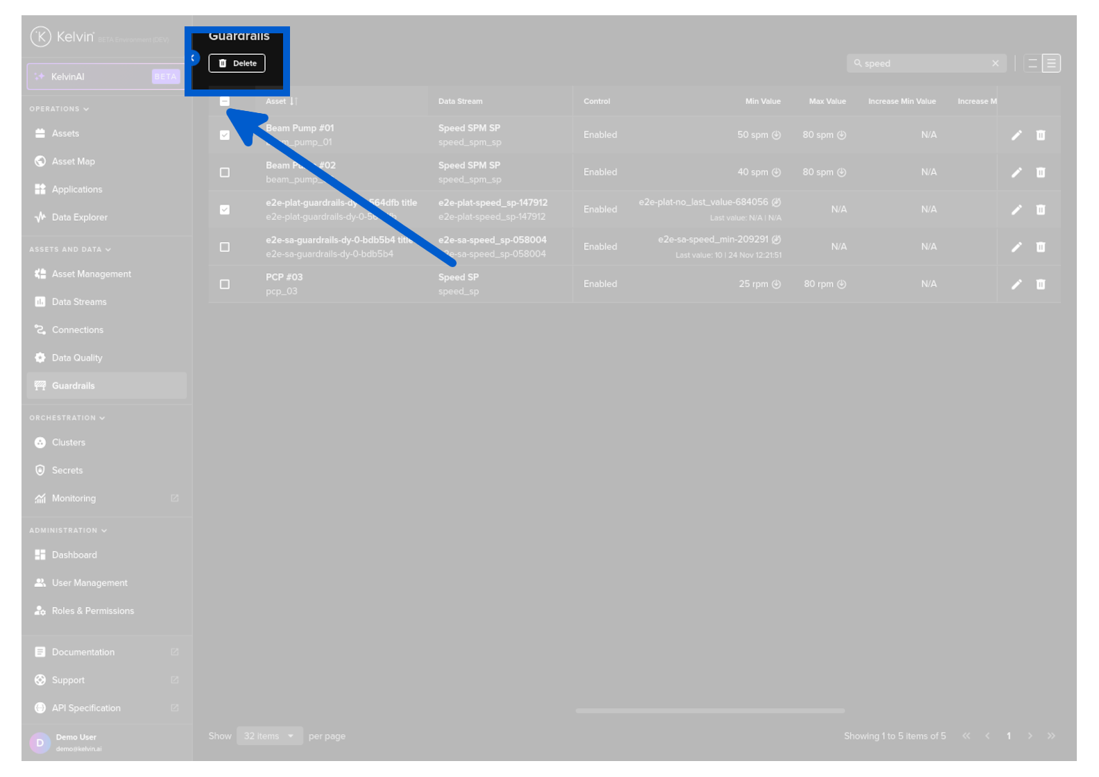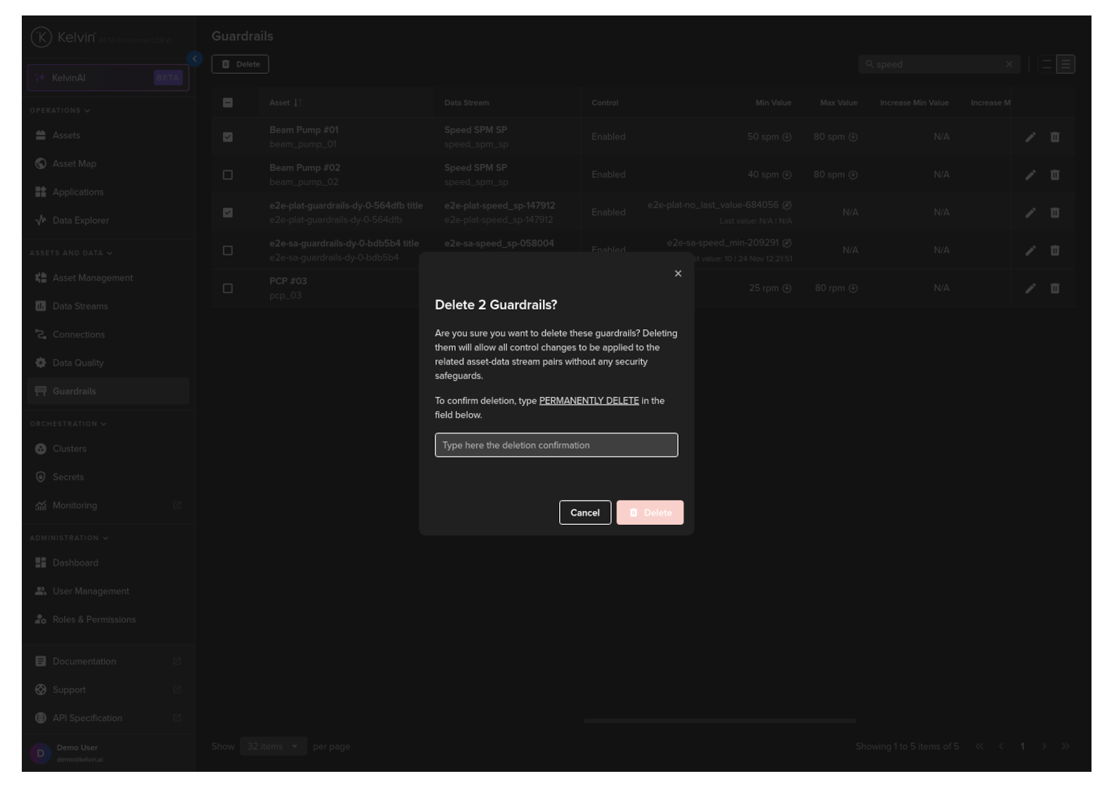 Congratulations, you have delete multiple Asset / Data Stream pair Guardrails.