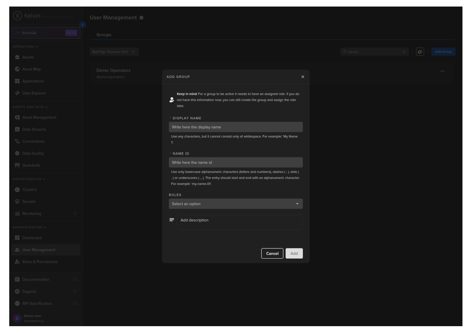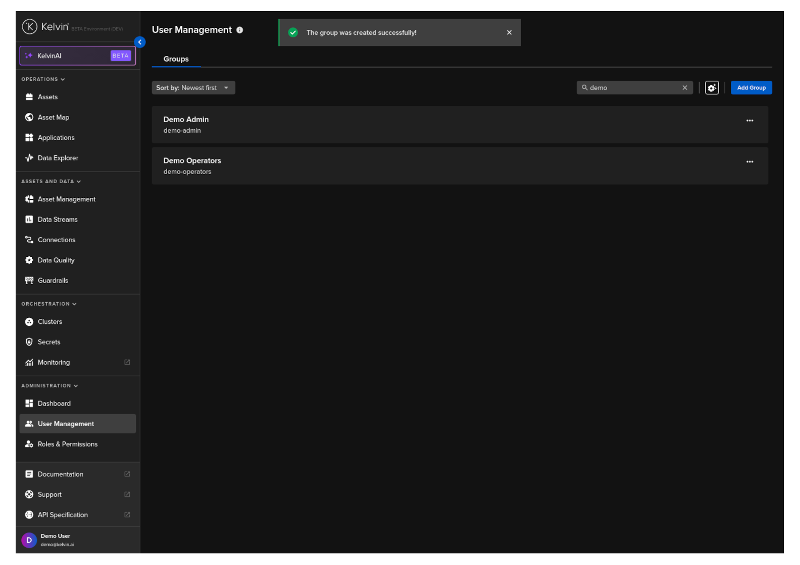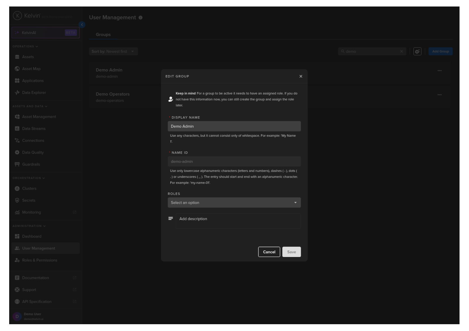 This is not the group in Keycloak or your SSO. That is managed outside of Kelvin UI.