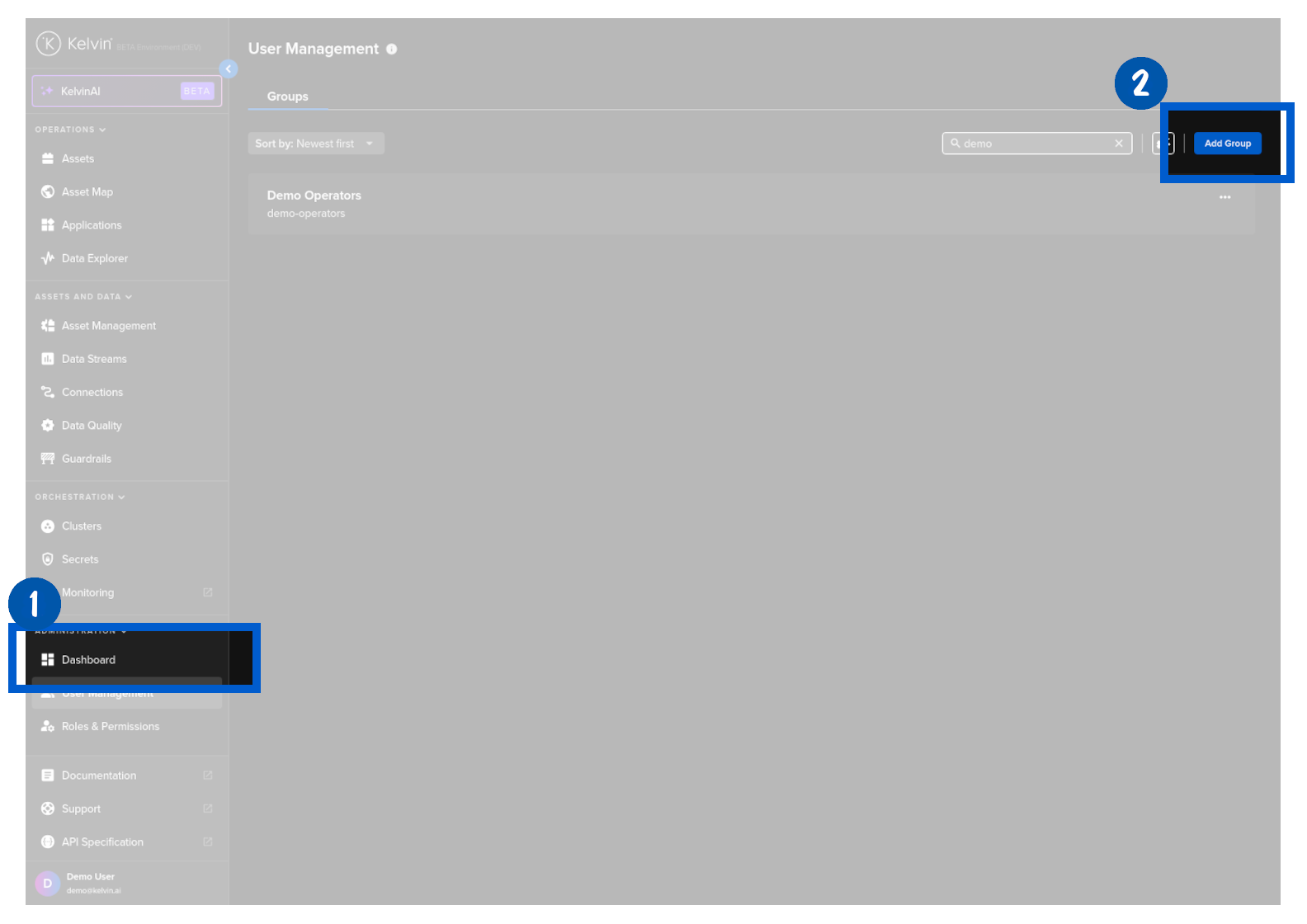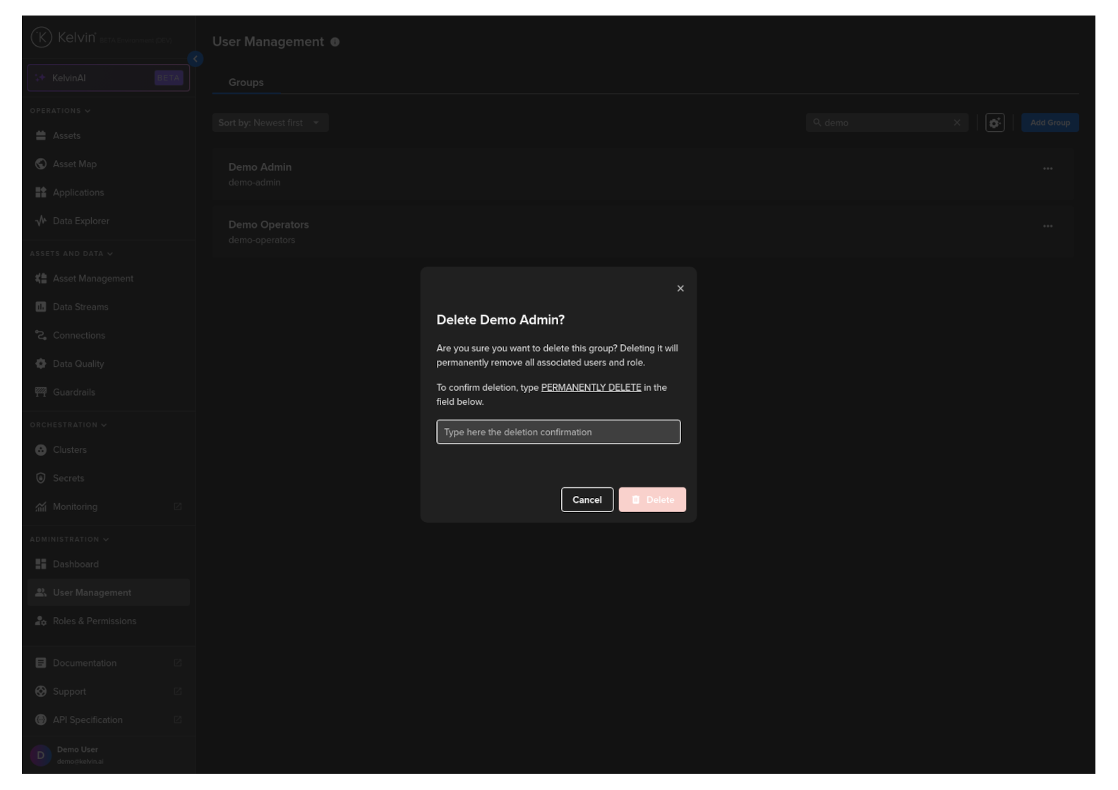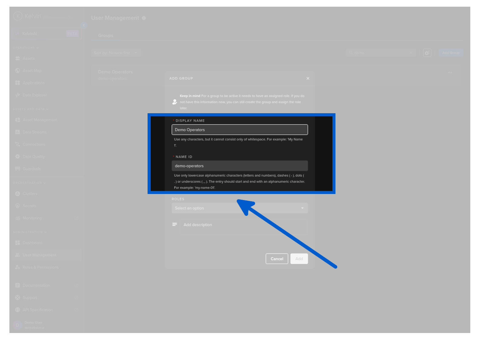 This is not the group in Keycloak or your SSO. That is managed outside of Kelvin UI.