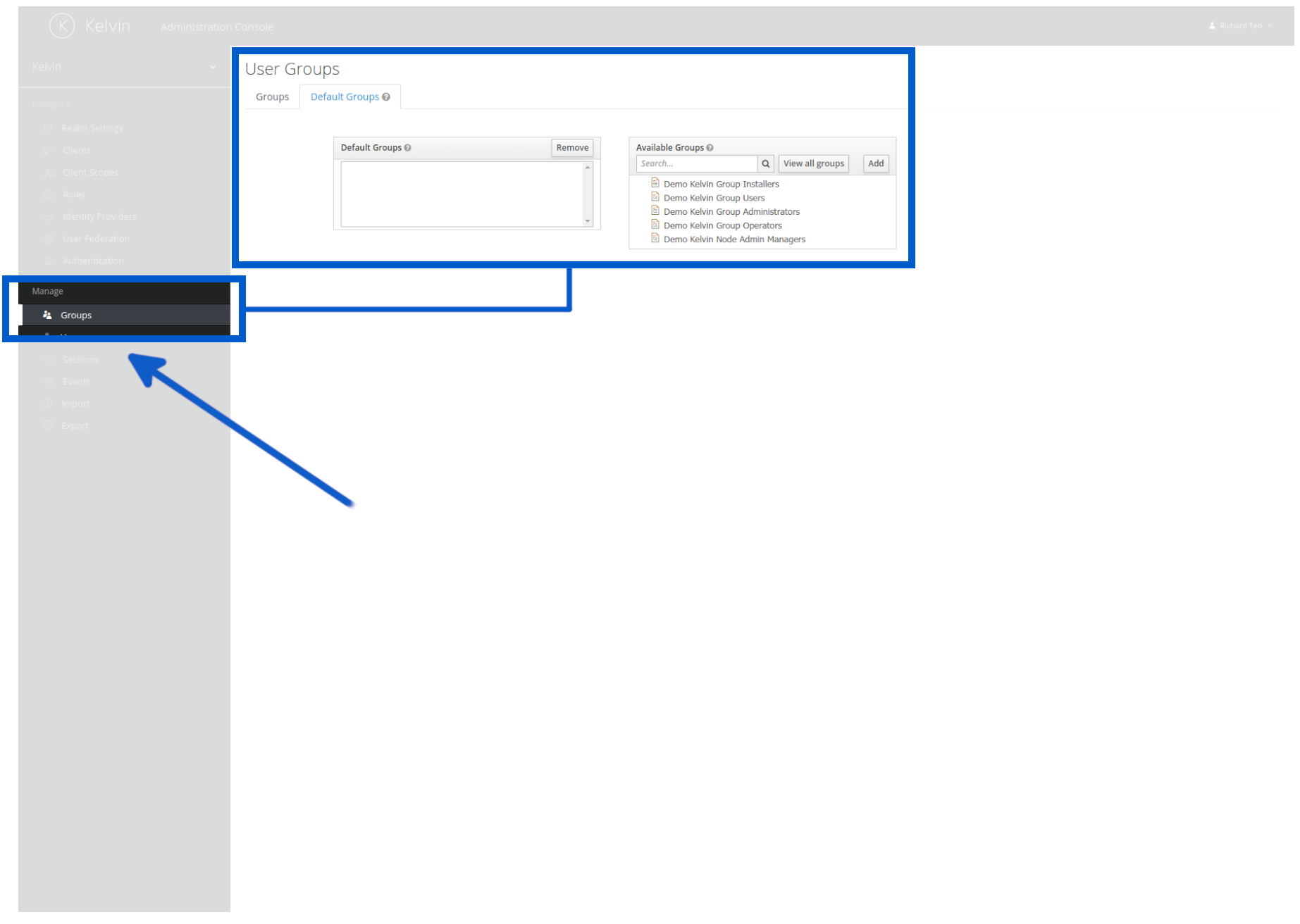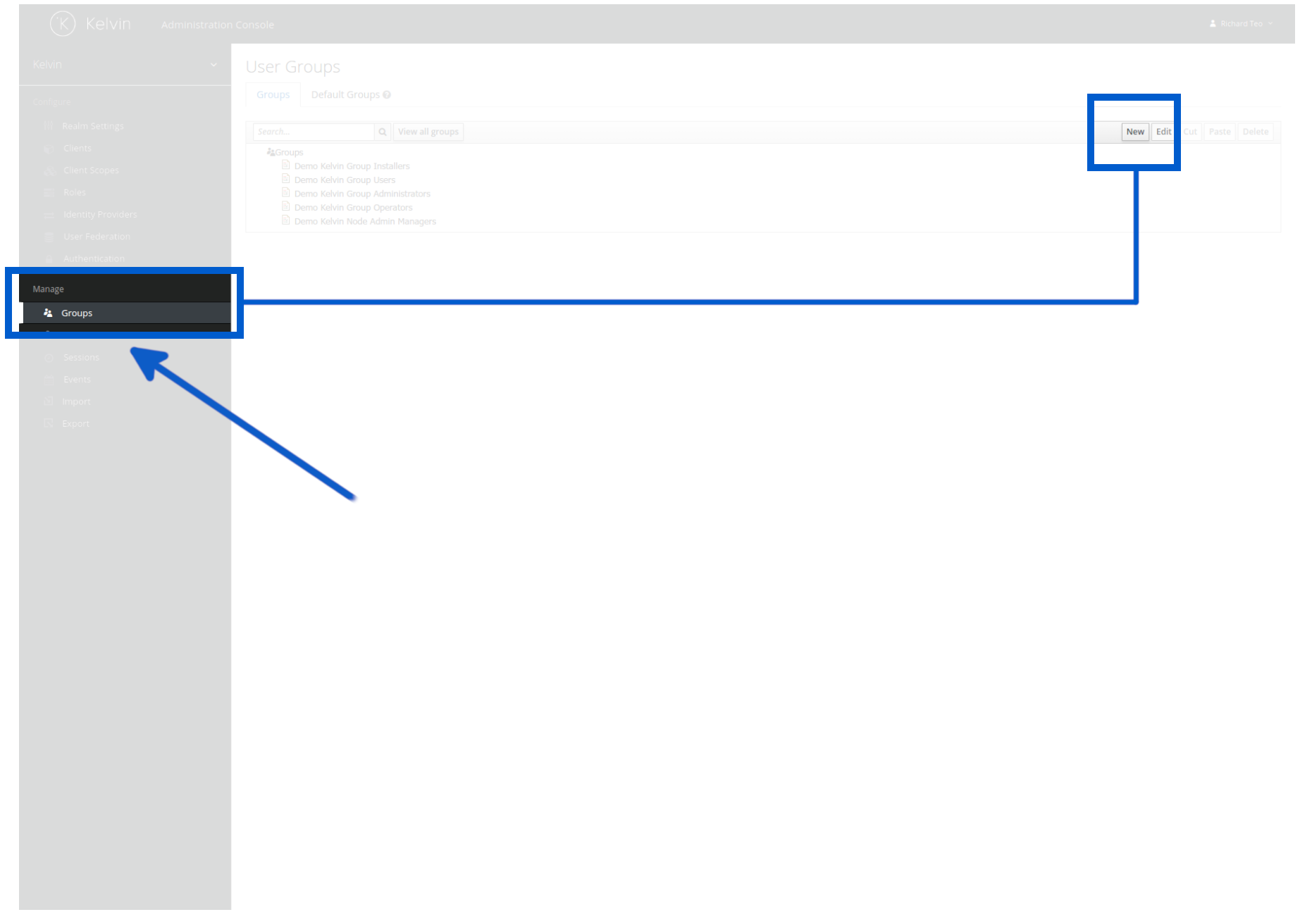 On this page you will learn as an Administrator of a Kelvin Cloud how to manage User Groups inside Keycloak.