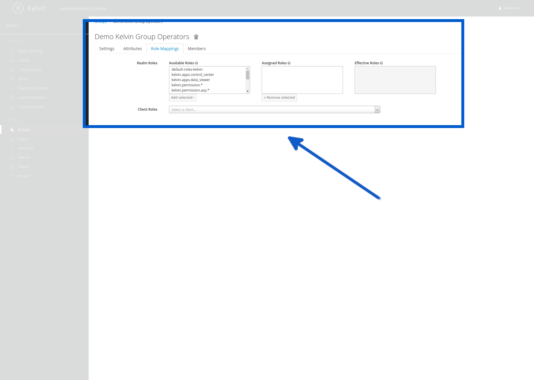 You will then see the editing section of the selected Group. For the basic operations the only area of importance is the Realm Roles in Role Mappings. So click on the Role Mappings tab.