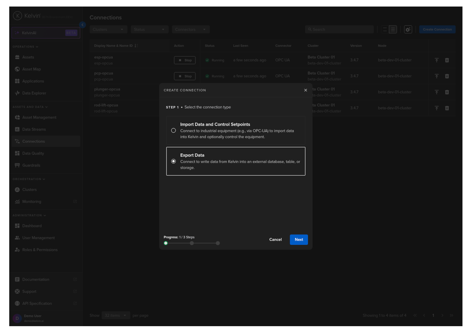 Now that you have tested the Export Connection Application locally on your computer, you can now package and upload it to the Kelvin Cloud where you can deploy it from Connections.