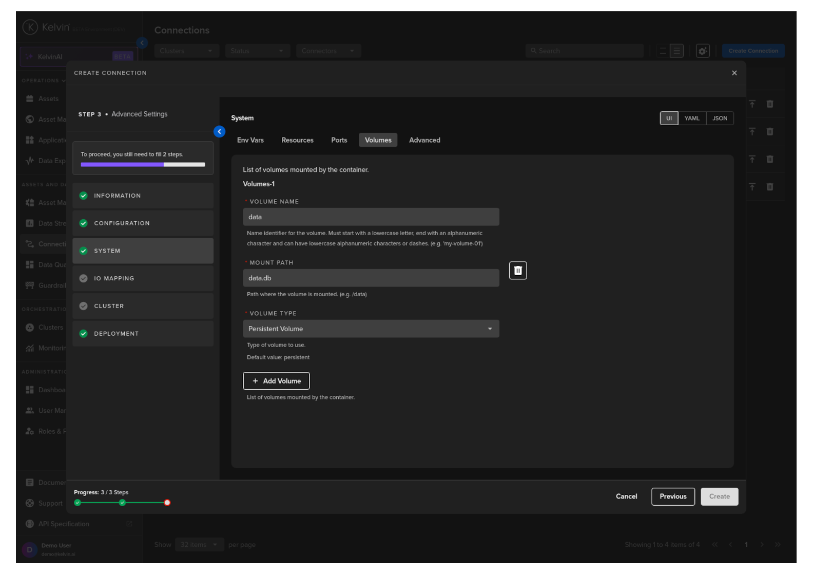 Before deploying this Export Connection Application to a cluster using the Kelvin Cloud you need to setup the environment variables as Secrets on the Kelvin Platform.